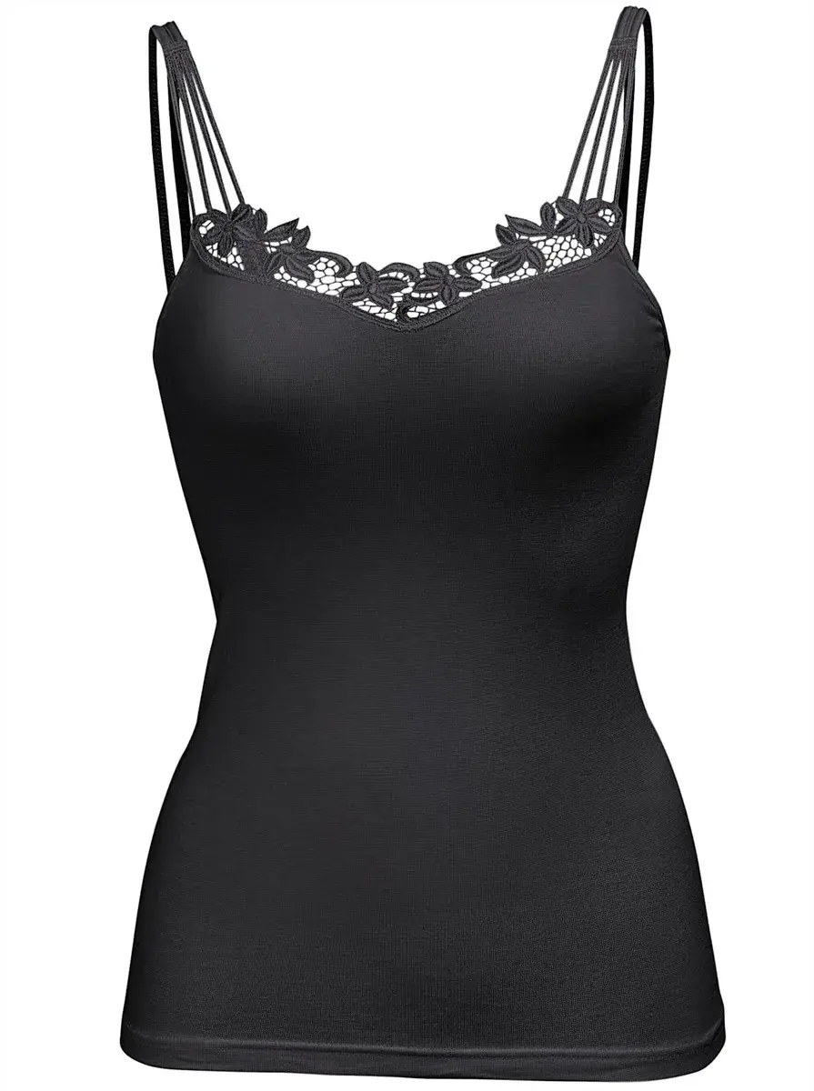 Рубашка красиво украшена декоративными бретелями и гравированной вышивкой на вырезе от Comazo. Шелковистое мягкое прикосновение. 98% Модал (МикроМодал), 2% Эластан.