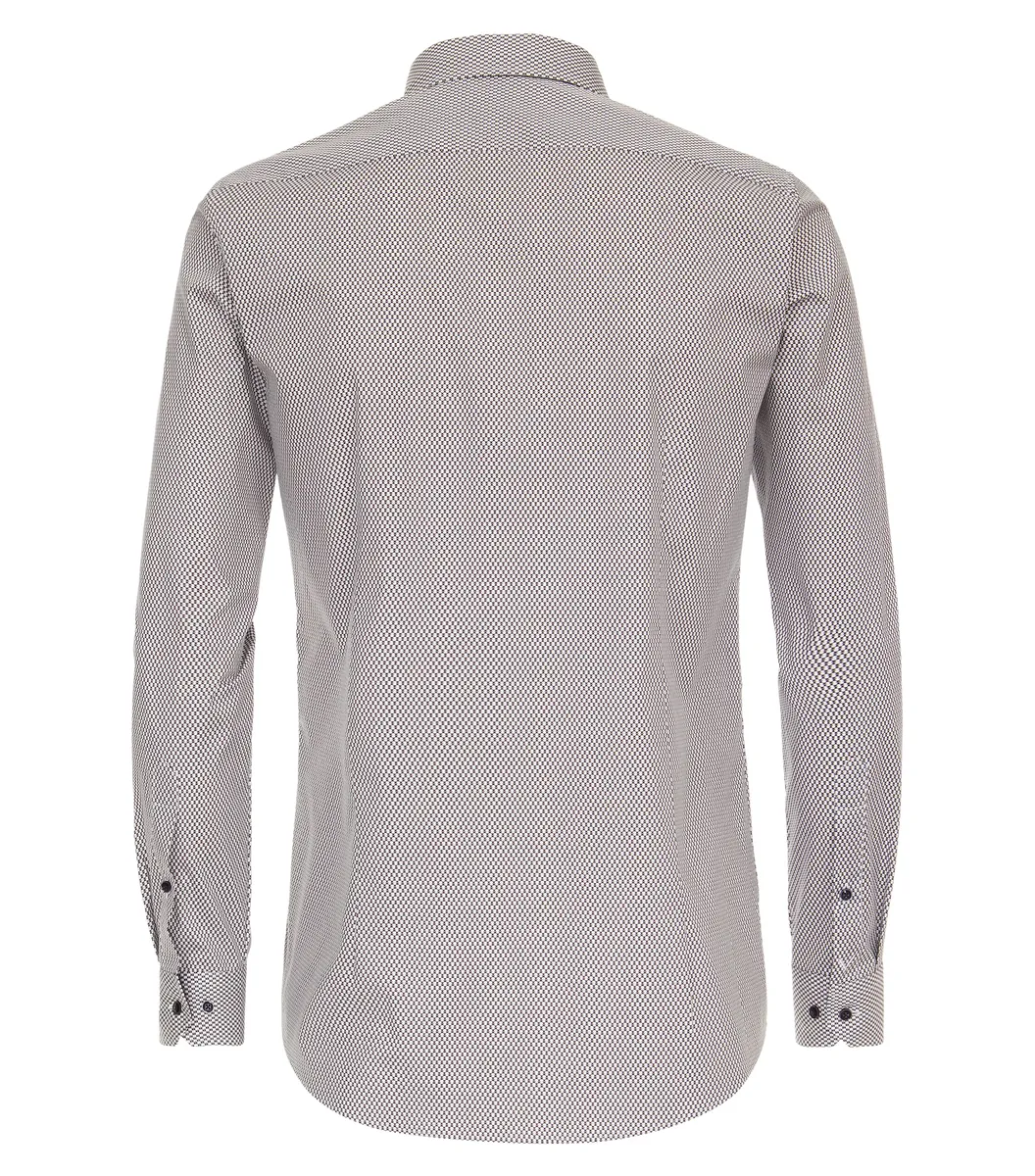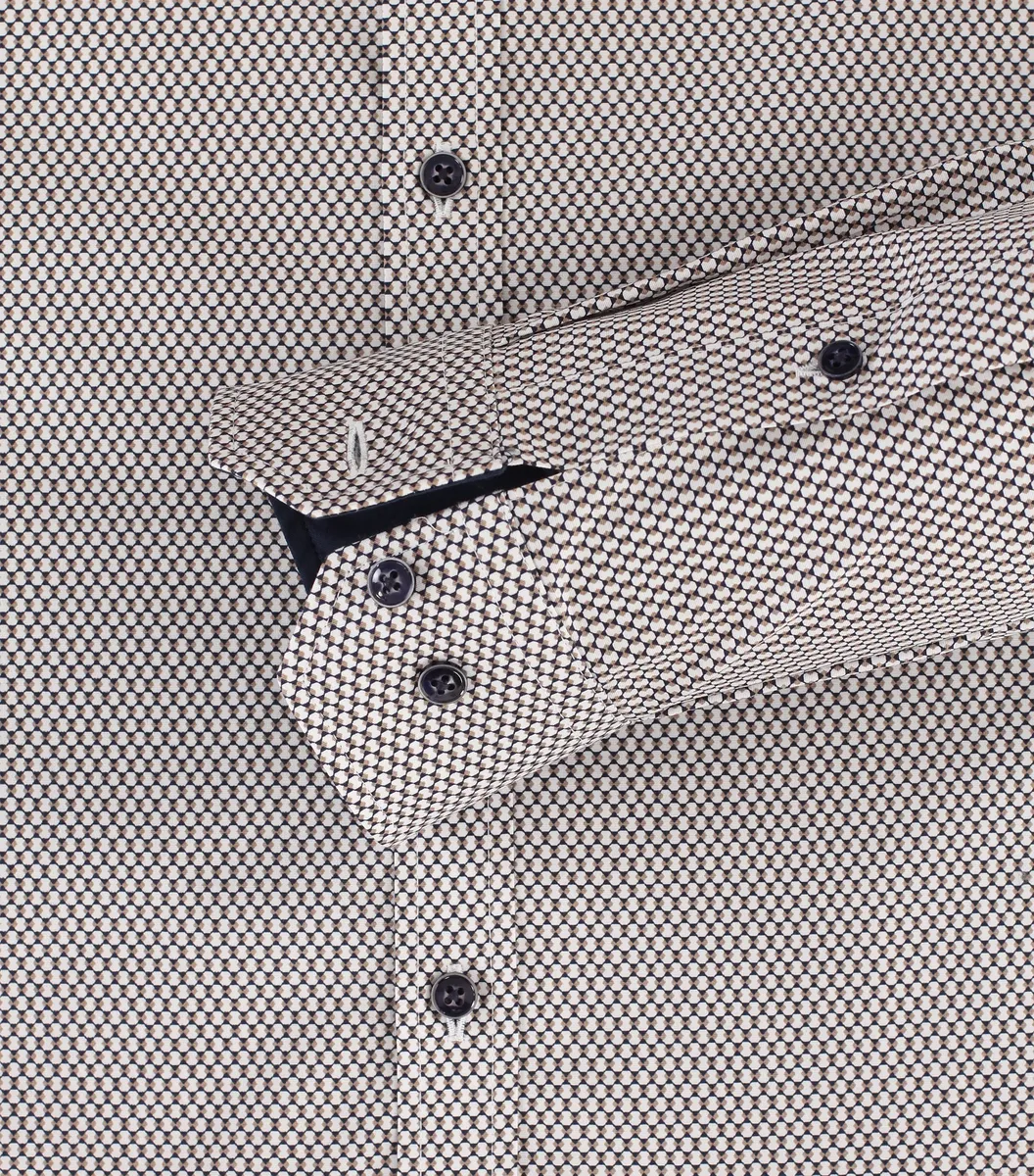Эта деловая рубашка имеет очень узкий крой и благодаря хлопку с содержанием эластана обеспечивает свободу движений и в то же время комфорт. Стильная модель с модным принтом станет идеальным компаньоном для следящего за модой мужчины.  Классическая рубашка с тканевыми брюками или в сочетании с чиносами соответствующего цвета — эта рубашка всегда будет хорошим выбором. Характеристики: Легкость в уходе. Фасон производителя: Body Fit. Состав материала: 97% хлопок, 3% эластан. Форма воротника: Воротник на пуговицах. Выкройка: Принт. Длина руки: Длинная. рукав Тип изделия: Деловая рубашка Рекомендации по уходу: бережный режим 40 °C, не отбеливать, не сушить в стиральной машине, не гладить горячим способом, профессиональная химчистка в обычном режиме, профессиональная влажная чистка в щадящем режиме Вариант продукта: с принтом Карманы: нет