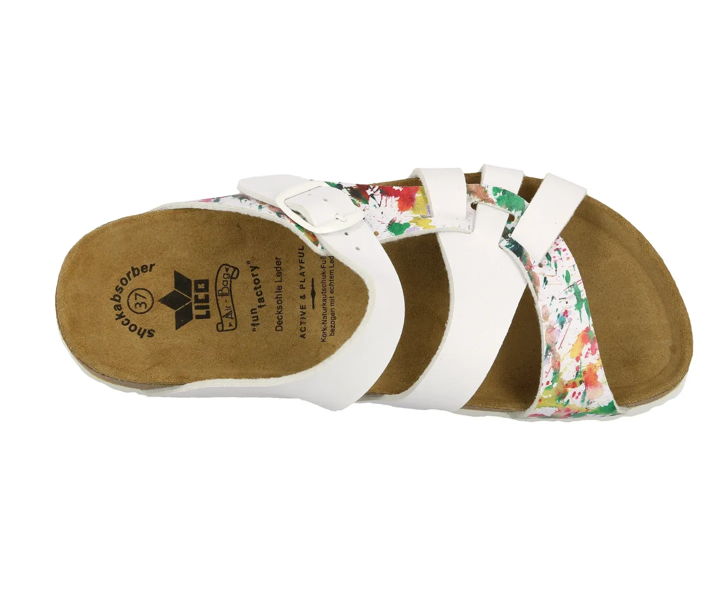 Тапочки LICO оптимально сопровождают каждую женщину в течение дня! Синтетический верх идеально сочетается с модным дизайном женской обуви. Просто удачное сочетание! Стелька из высококачественной кожи является большим плюсом, поскольку обеспечивает приятный микроклимат в обуви. Практичные пряжки позволяют детям с легкостью надевать и снимать сумку. Чтобы спонтанный визит к соседям или завтрак на балконе не был проблемой, тапочки оснащены резиновой подошвой. Тапочки от LICO всегда обеспечивают дополнительную дозу комфорта. Мюли для женщин из синтетического материала, регулируемая пряжка, кожаная стелька, амортизирующая активная подошва из ЭВА, стелька: пробка/резина.
