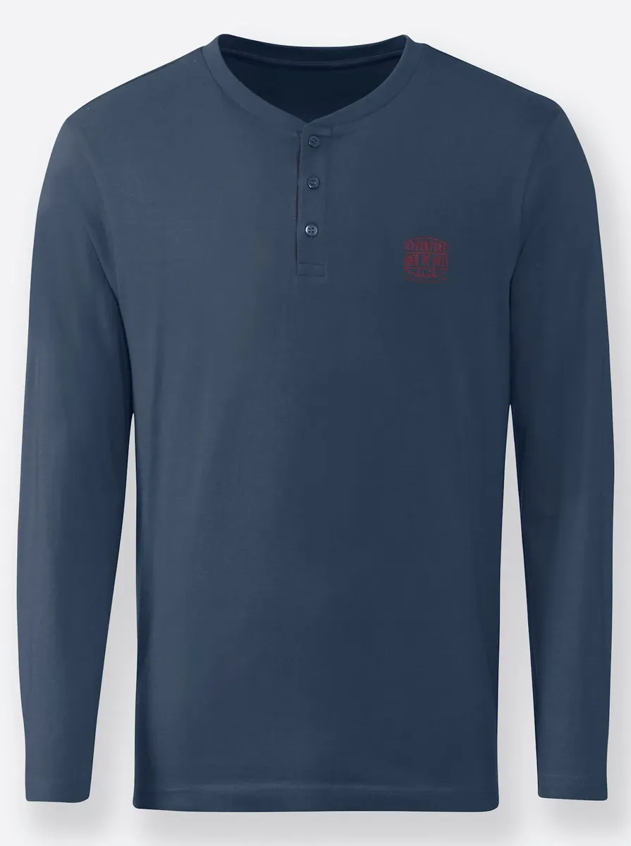 Рубашка с длинными рукавами Catamaran освежена контрастными деталями. Вырез горловины «хенли» с короткой планкой на пуговицах. Супер комфортное качество. 100% хлопок. Машинная стирка.