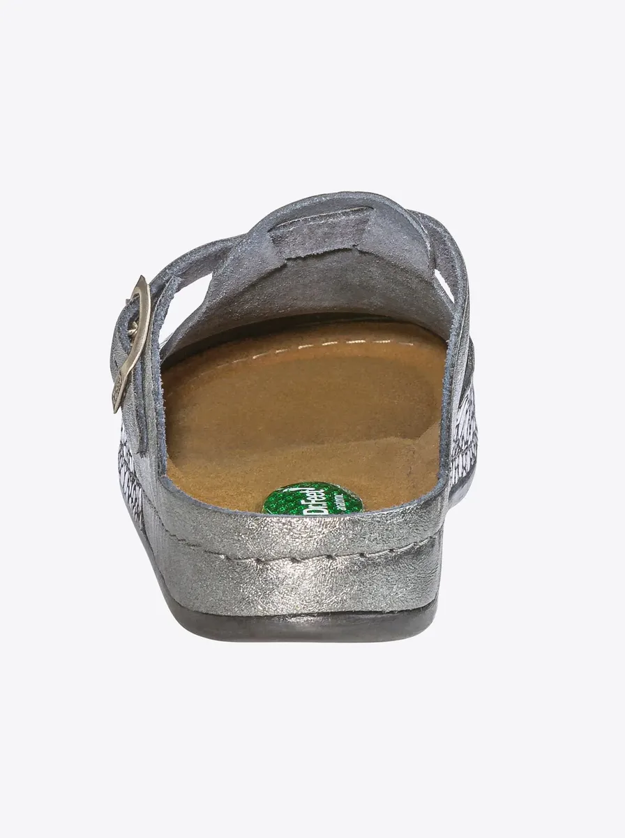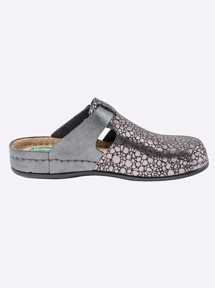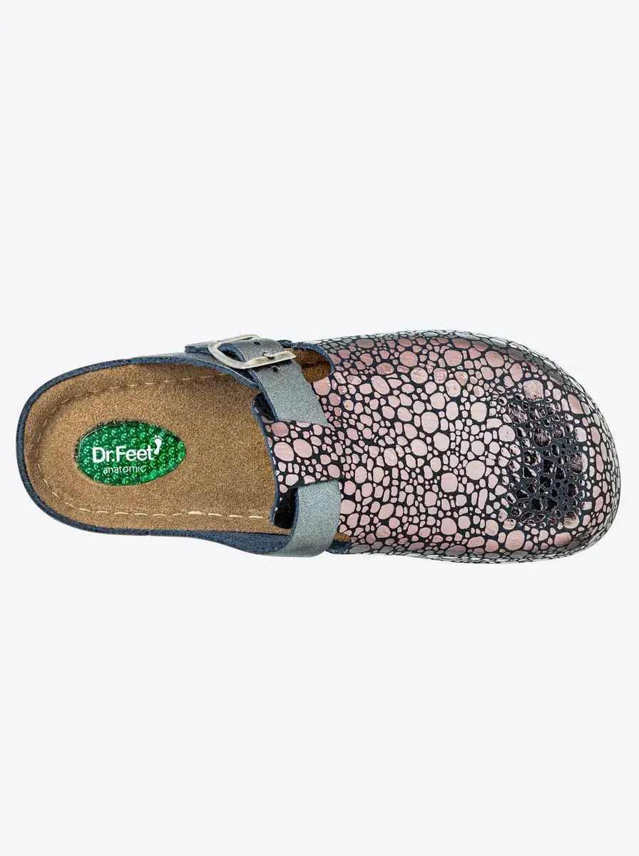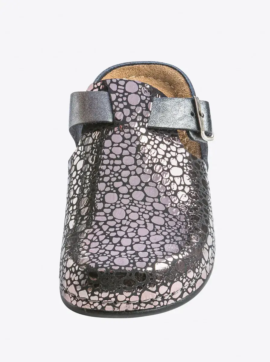 Тапочки европейского производства. Изготовлен из коровьей кожи с современным металлическим эффектом. Кожаная стелька с гелевой пяточной подушечкой. Высота каблука около 35 мм. ширина Ф.