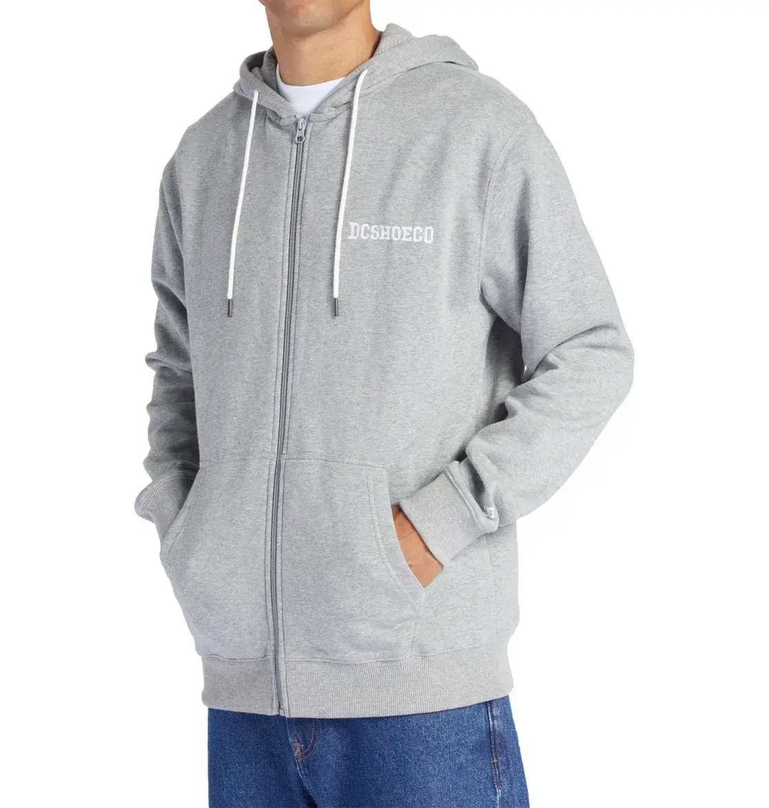 Мужская толстовка на молнии. Особенности этого продукта: Экологически чистый материал: Легкая ткань из переработанного хлопка и полиэстера с начесом [230 г/м2], Стандартная посадка, Воротник: Воротник с капюшоном, Длинные рукава, Застежка: Молния по всей длине, Карманы-кенгуру, Логотип: Вышивка на на левой груди, небольшой принт с логотипом DC в нижней части левого рукава. Другие особенности: стандартная молния SAB в центре спереди, тесьма «елочка» на шее и завязки с фирменной металлической отделкой. Базовая линия — толстовка на молнии для мужчин.