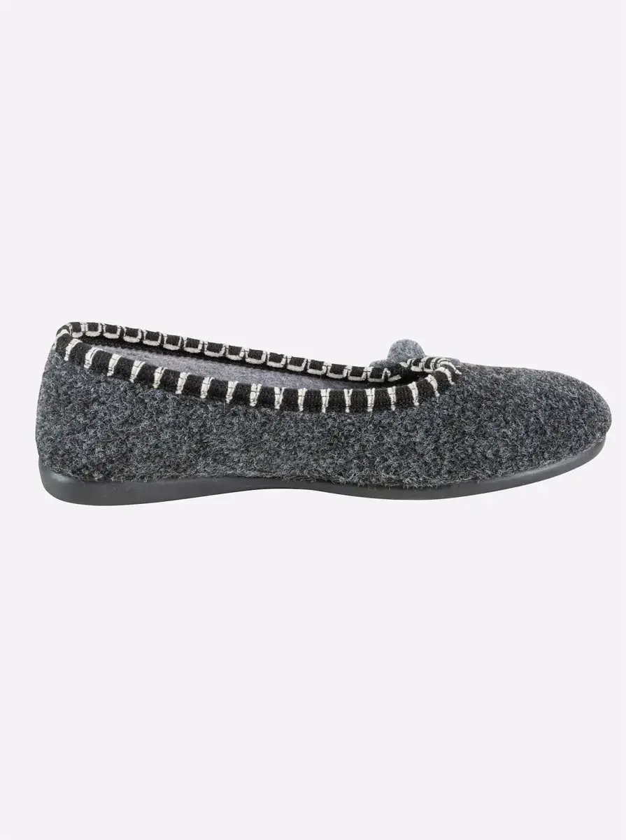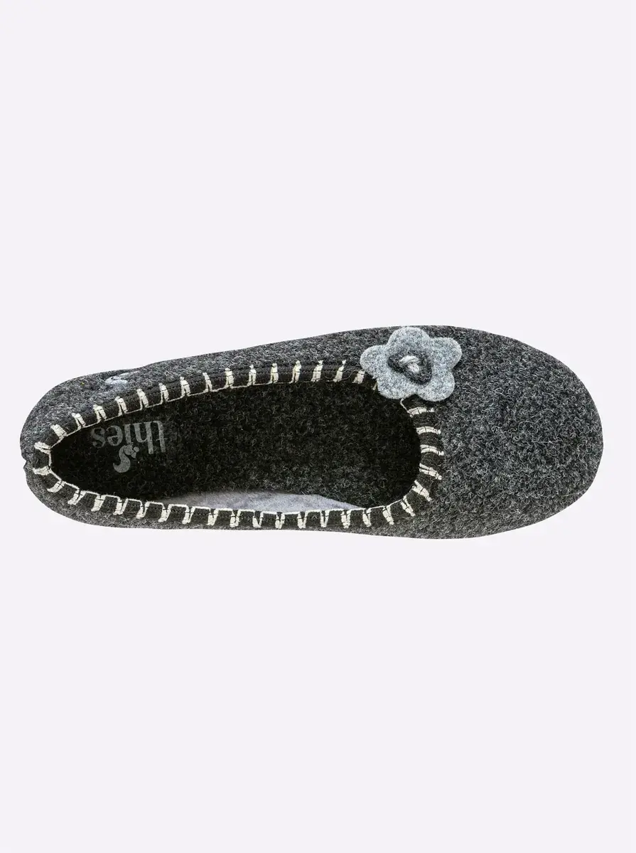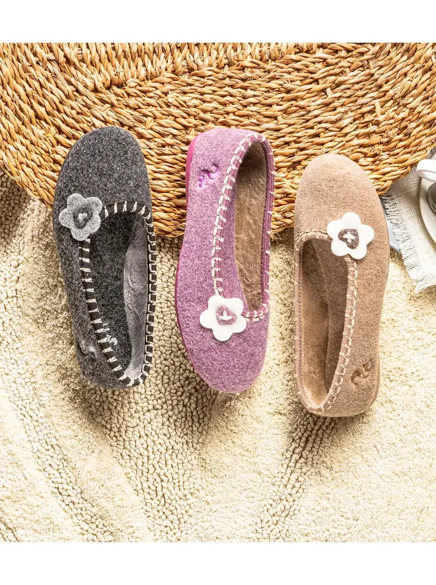 Тапочки производства Испании. Балетки из фетра, с декоративными цветочными аппликациями и подкладкой из бархатистого велюра. Синтетическая подкладка и стелька. Изготовлен из переработанного полиэстера. Гибкая резиновая подошва. ширина Ф.