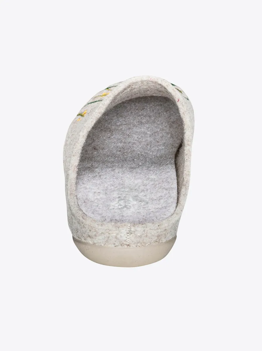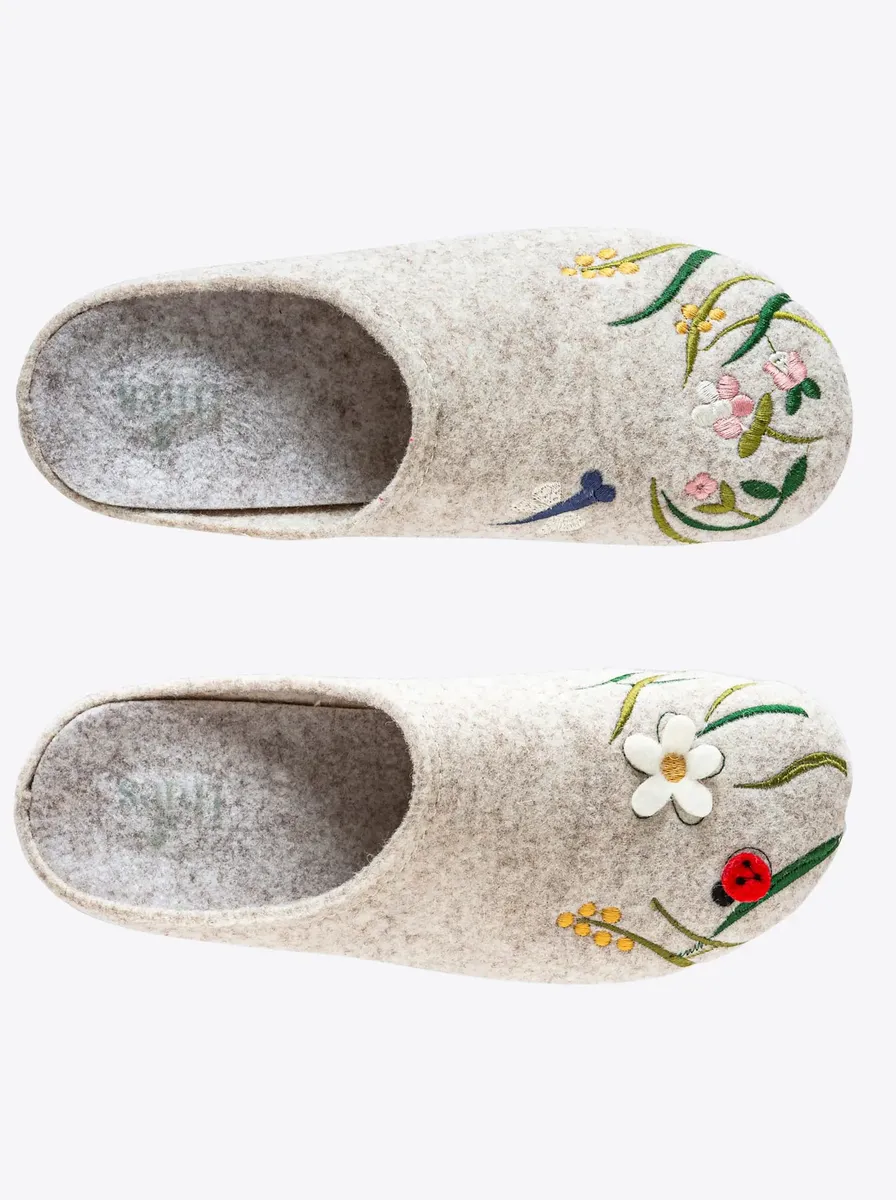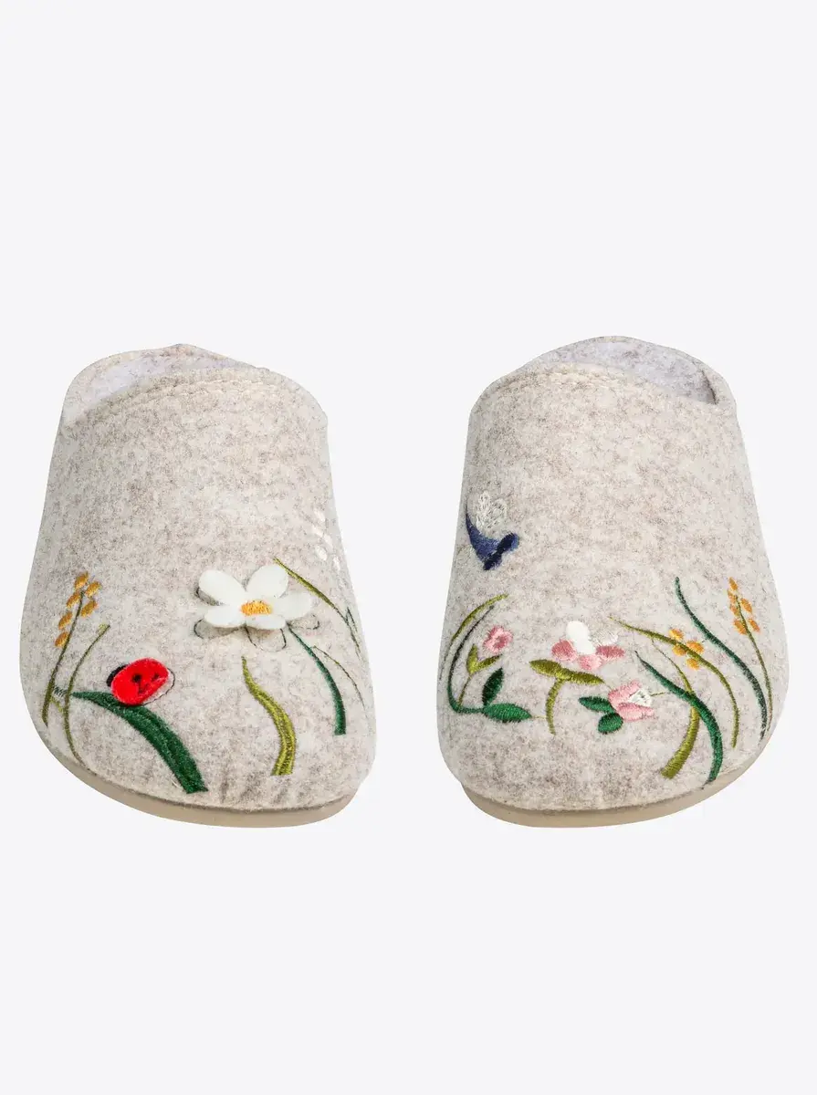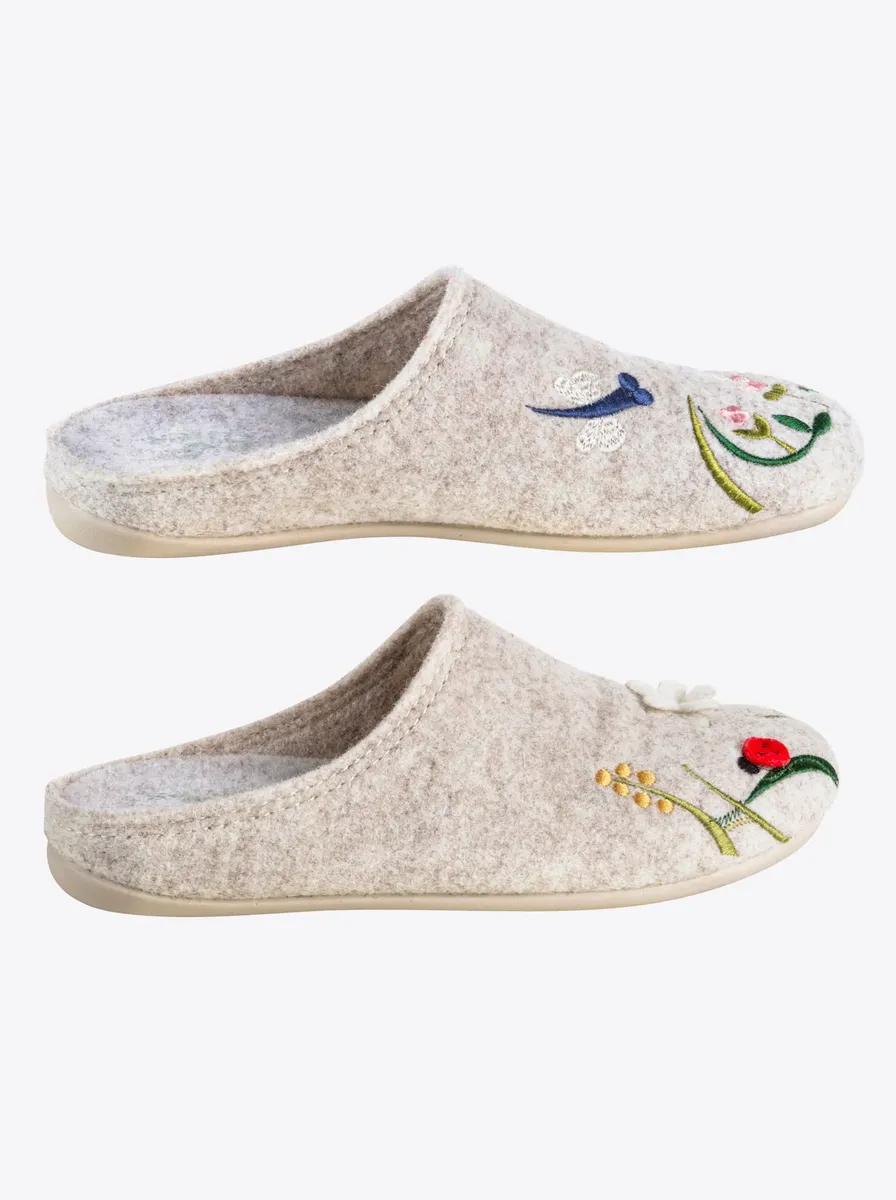 Тапочки производства Испании. Выполнена из качественного фетра, расшита разными цветочными мотивами, отдельными деталями с 3D эффектом. Съемная стелька, покрытая фетром. Плоская резиновая подошва. ширина Ф.