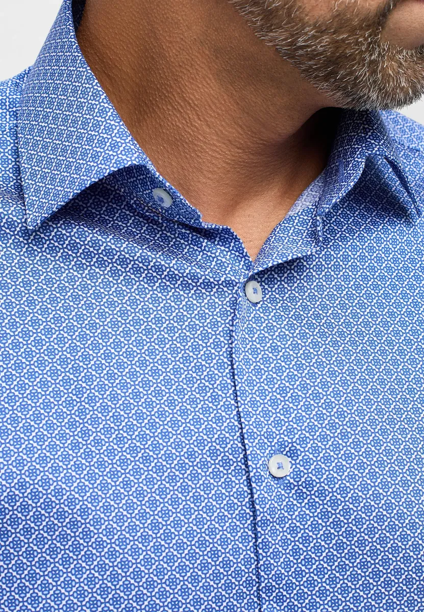 Рубашка с принтом, которая гарантирует вам модный внешний вид. Эта рубашка с длинными рукавами MODERN FIT впечатляет как гармоничным по цвету принтом по всей поверхности, так и высококачественным твилом. Индивидуальный крой понравится тем, кто хочет интерпретировать классический образ более модно. Рубашка (без нагрудного кармана) изготовлена ​​из 100% тончайшего хлопка (без глажки), который обеспечивает мягкость и легкость в уходе. . Современный воротник «Кент» и практичные комбинированные манжеты дополняют образ. Рубашка имеет закругленную форму и может носиться поверх пояса.