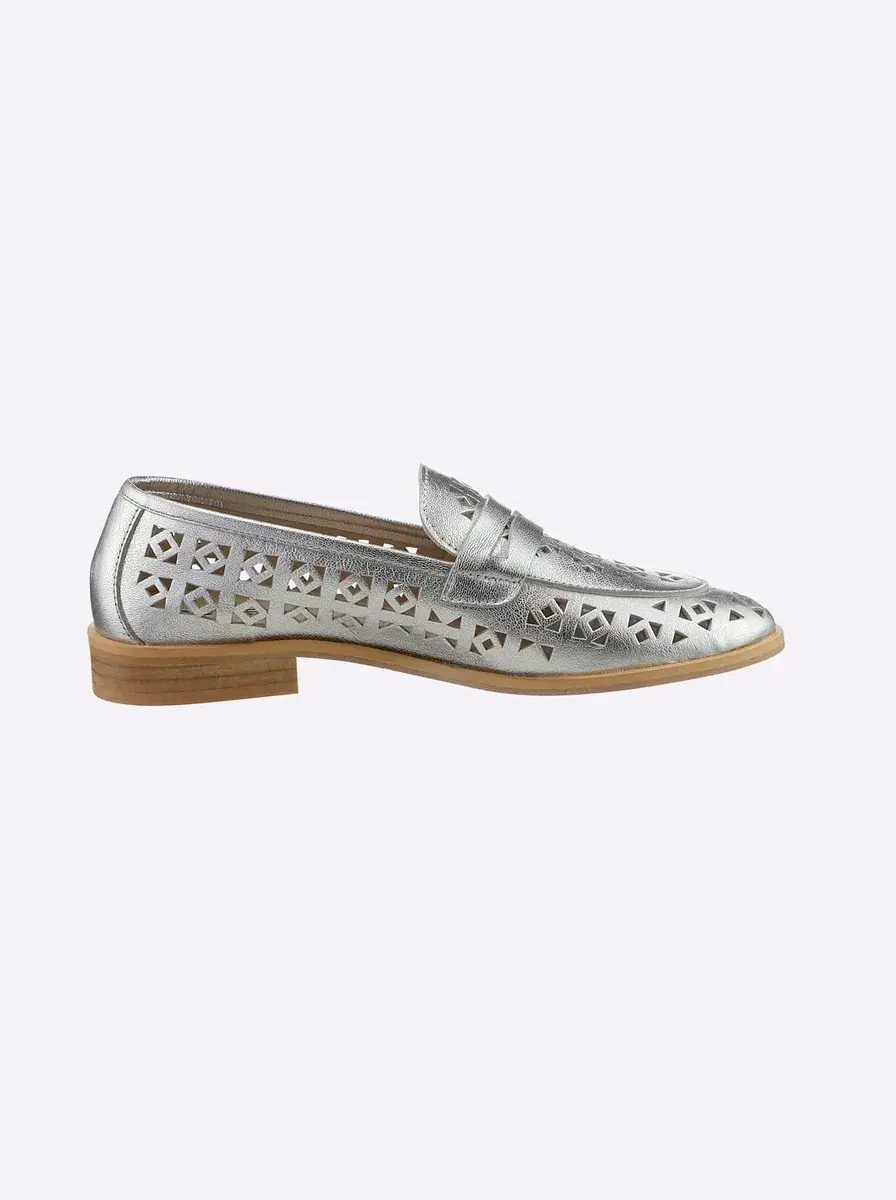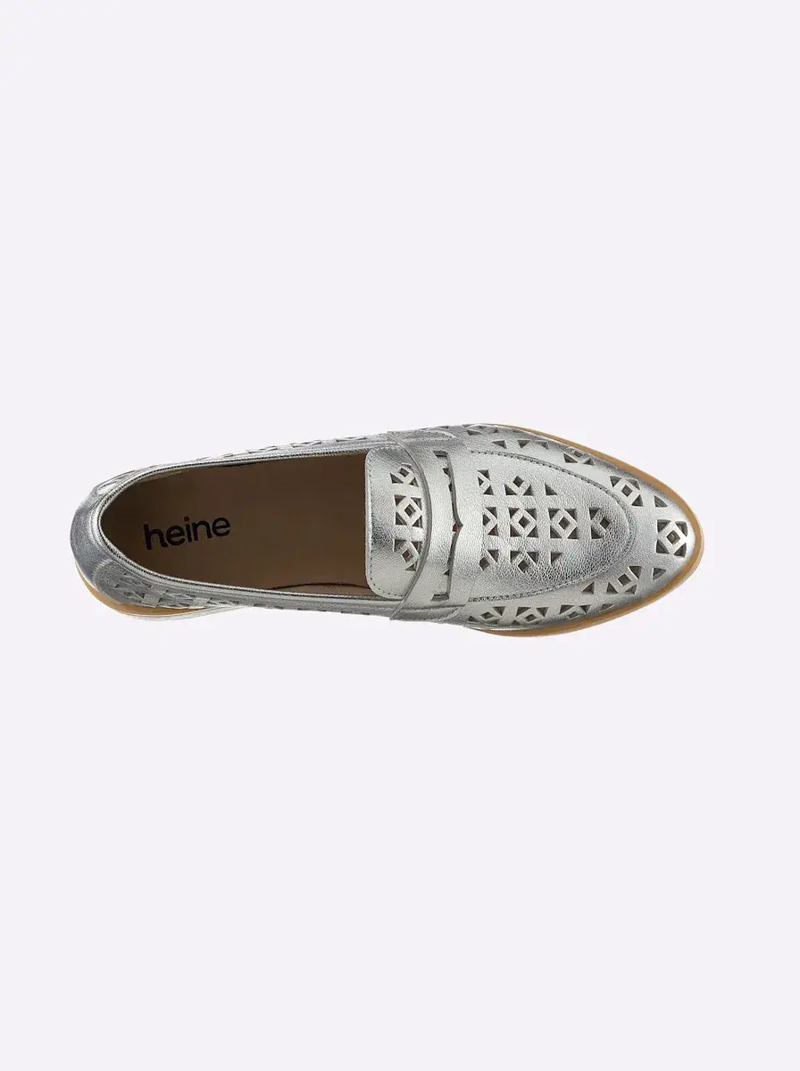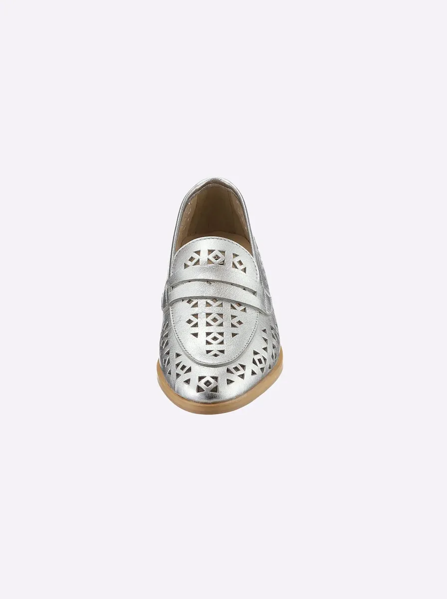 Тапочки производства Испании. Изготовлены из высококачественной воловьей кожи наппа модного металлизированного оттенка, с удобной текстильной подкладкой и кожаной стелькой. Резиновая подошва. Каблук, высота ок. 15 мм.