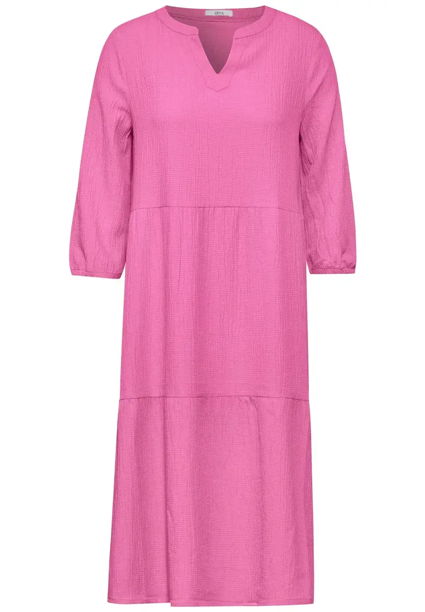 Платье-туника CECIL со структурой, платье миди из жатого хлопка, вырез горловины с разрезом, рукава 3/4 с манжетами, небольшая талия, декоративные оборки по швам. Женское платье-туника от CECIL представляет собой очаровательное платье миди из жатого хлопка со структурированной поверхностью, создающей интересный образ. Вырез горловины и рукава 3/4 с манжетами создают элегантный силуэт. Слегка скроенный и украшенный декоративными рюшами по швам, он привлекательно подчеркивает фигуру и придает платью изысканный вид. Платье миди из хлопка с разрезом, круглым вырезом, рукавами 3/4 с манжетами. Слегка скроено. Декоративные оборки в швах. Размеры для европейского размера M примерно: длина 113 см, обхват груди 111 см, ширина низа 176 см. Материал: 56% вискоза, 43% полиэстер, 1% эластан Особенности: однотонный. Состав материала: 56 % вискоза, 43 % полиэстер, 1 % эластан. Примечание по размеру: эта модель больше.Материал: 56 % вискоза, 43 % полиэстер, 1 % эластан. Инструкция по уходу при отбеливании: Не отбеливать. Инструкция по уходу при глажении: Утюг. умеренно горячая (2 точки) / теплая Утюг / Утюг при умеренной температуре Инструкции по уходу Уход за тканями: Чистка (P) / Очистка / Обычная процедура Инструкции по уходу Сушка: Не использовать машинную сушку Инструкции по уходу Стирка: Деликатный цикл 30°Страна производства: TRЦелевая группа: Женщины