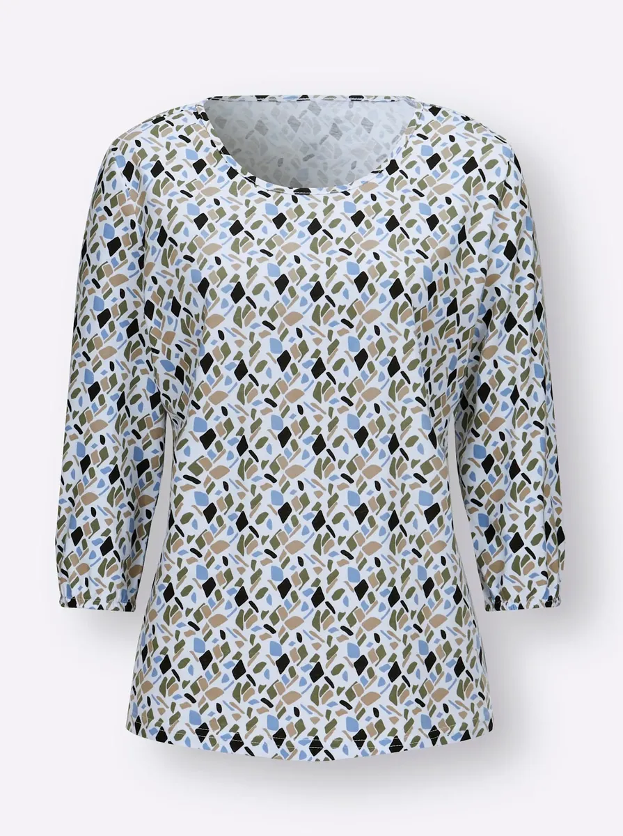 Рубашка с рукавом 3/4 с графическим принтом. С круглым вырезом по окантовке и эластичными манжетами. 100% хлопок. Машинная стирка.