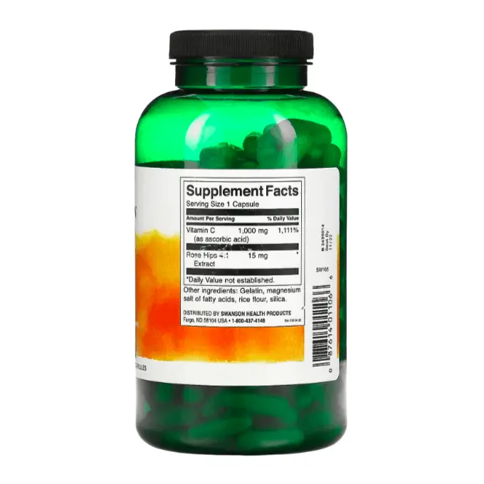 Не является лекарственным средством.Витамин С от Swanson с шиповником - идеальная пара, которая укрепит вашу иммунную систему и обеспечит выработку антиоксидантов. Эти удобные капсулы феноменально работают в дороге или дома, чтобы помочь укрепить здоровье вашего иммунитета. Эта высокоэффективная формула содержит 1000 мг витамина C и 15 мг экстракта шиповника в каждой капсуле, что позволяет с легкостью воспользоваться преимуществами витамина C.