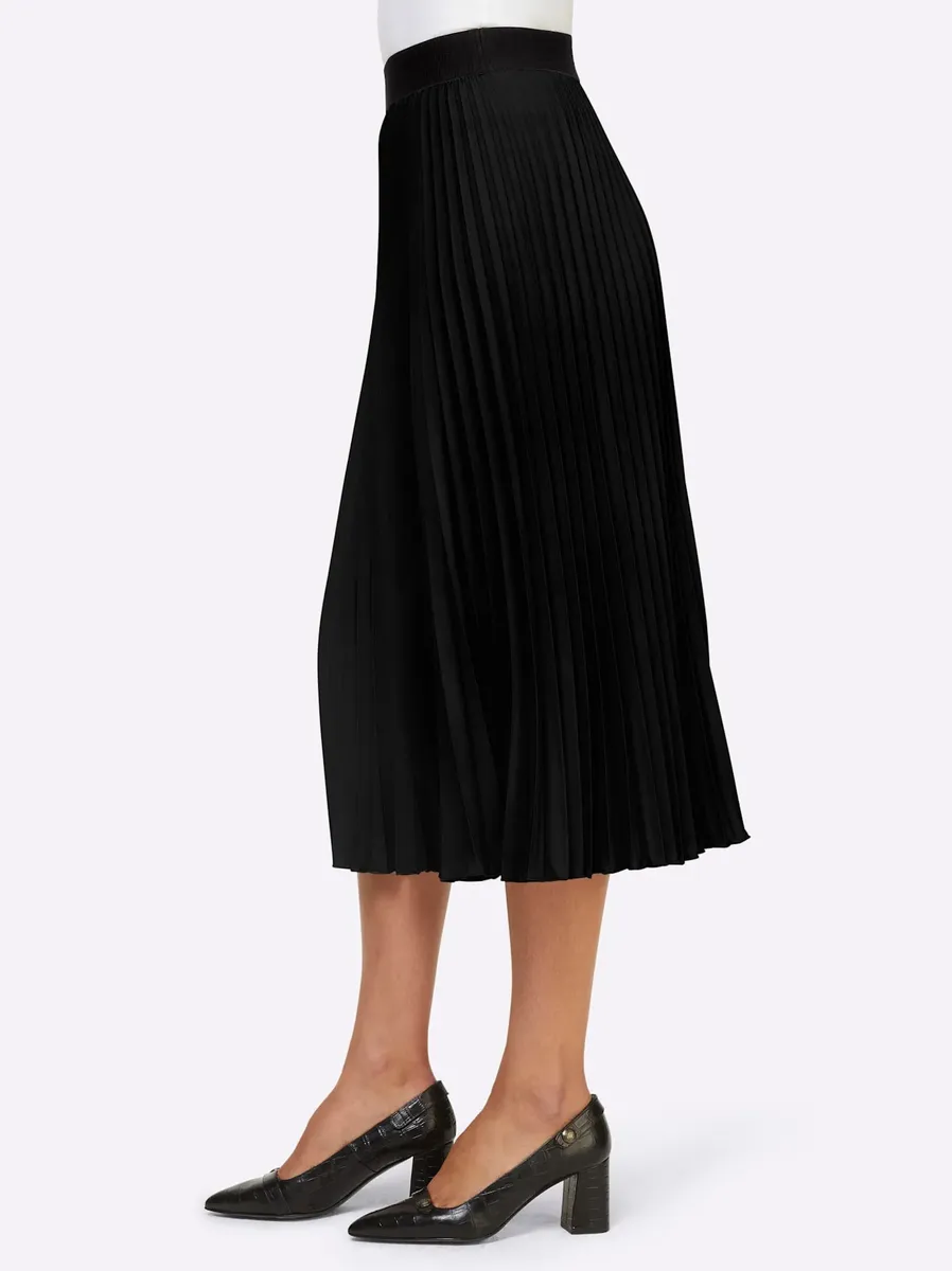 Плиссированная юбка Современная и универсальная: широкая, свободная модель с широким эластичным поясом по всему периметру. Комфортное и простое в уходе качество. 100% полиэстер. Машинная стирка.