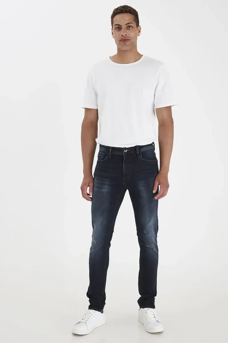 Облегающие фигуру мужские джинсы скинни от бренда Blend. С особенно узкой формой ног и низкой высотой талии. Украшен фирменной этикеткой. Можно комбинировать разными способами для проведения досуга. Джинсы из смесового хлопка комфортны для кожи.