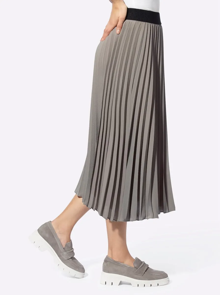 Плиссированная юбка Современная и универсальная: широкая, свободная модель с широким эластичным поясом по всему периметру. Комфортное и простое в уходе качество. 100% полиэстер. Машинная стирка.