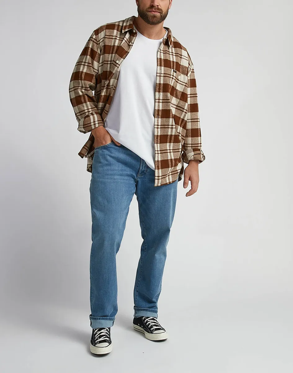 Мужская футболка комбинированного кроя от бренда Lee. С обычным широким вырезом. Это позволяет создавать модные и универсальные образы. Верх удобен в ношении благодаря мягкому одинарному трикотажу.