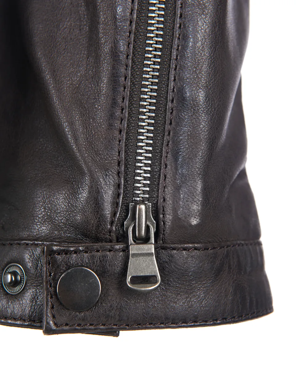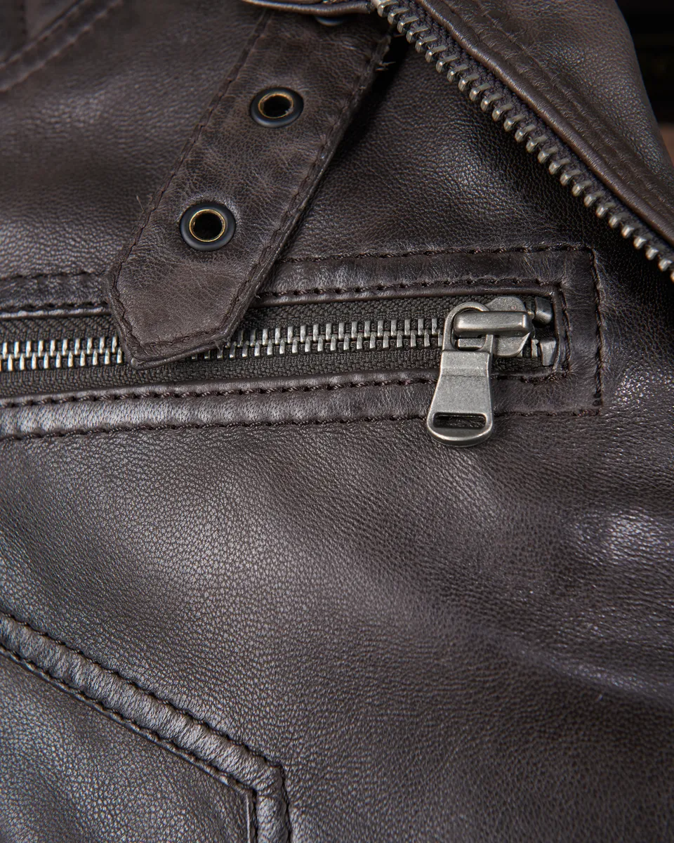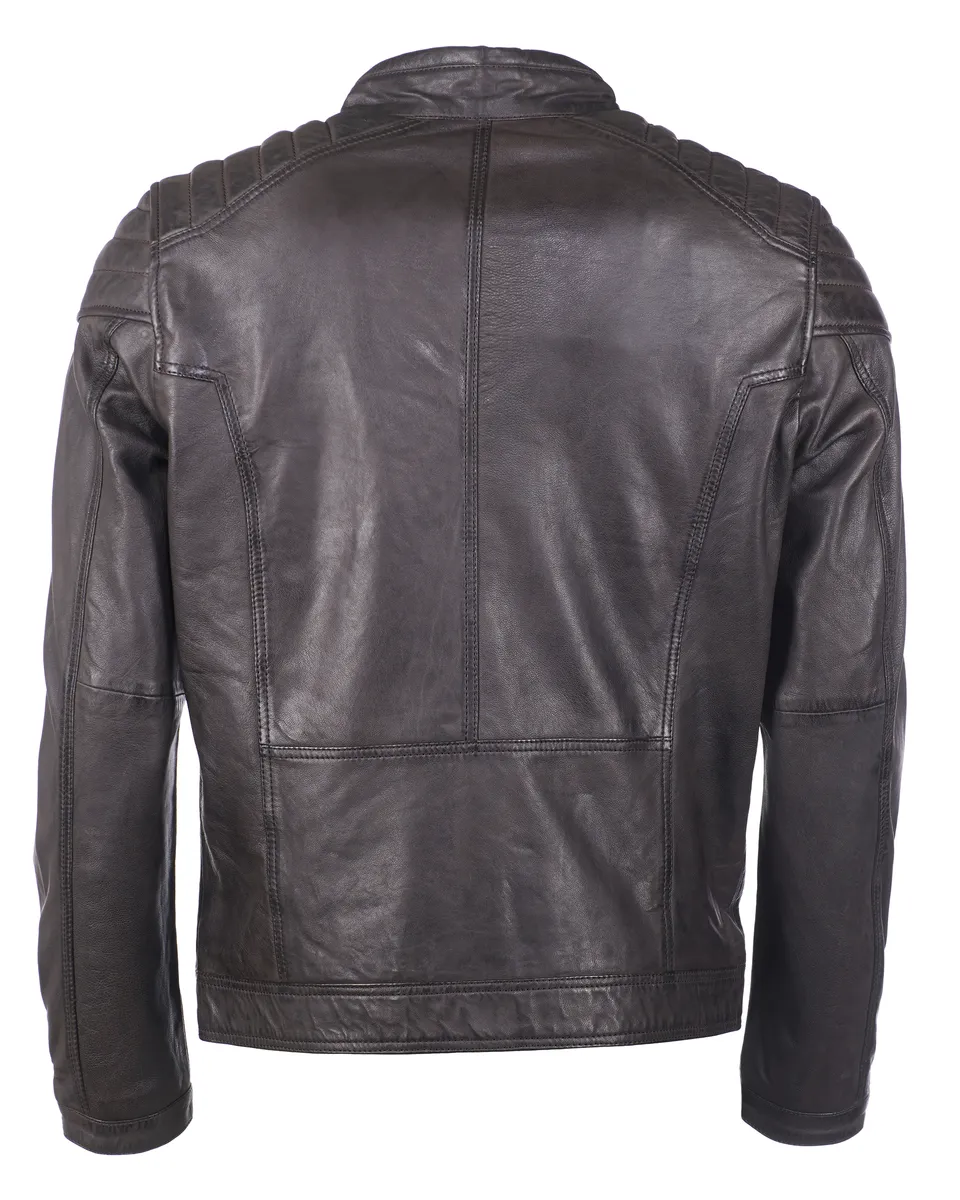 Эта кожаная куртка из мягкой овечьей кожи имеет два нагрудных кармана на молнии, два боковых кармана и два внутренних кармана. Пряжка на круглом воротнике в сочетании с аккуратно обработанными декоративными швами и полиэстеровой сеткой внутри образуют изящную мужскую кожаную куртку. Застегивается на молнию и имеет прямой крой. Для оптимальной посадки на концах рукавов имеется кнопка с застежкой-молнией, которую можно застегивать по отдельности. Особенности: МолнииОтбеливание: Не отбеливатьПодкладка: Легкая подкладкаСтрана происхождения: ПакистанПроизводитель: JCCCКоллекция: Весна/Лето 18Форма воротника: Круглый вырезСостав материала: Внешняя ткань: 100% кожа ягненка / Внутренний материал: 100% полиэстерДлина: обычнаяМатериал подкладки: полиэстерМатериал внешней ткани: гладкая кожаПримечание к материалу: нет/не актуальноУзор: однотонныйПосадка: прямая Инструкция по уходу: специальная чистка кожиТип/стиль изделия: байкерскийДлина спины: приблизительно : Длинный рукав