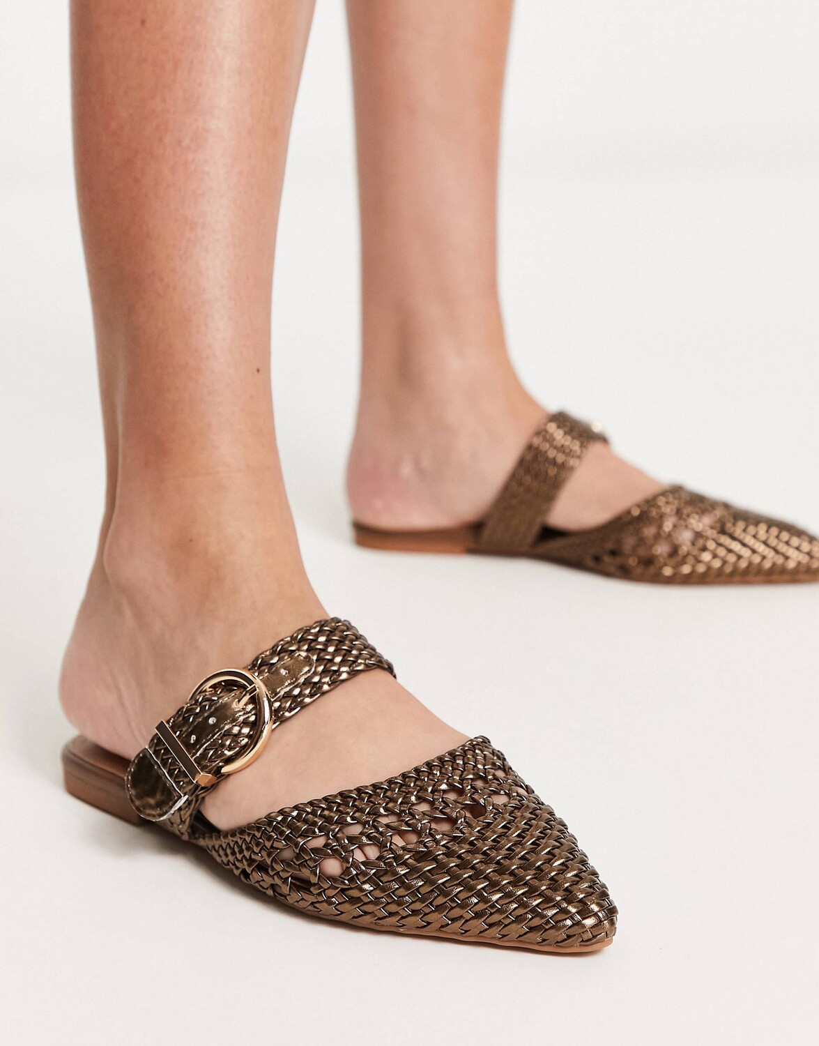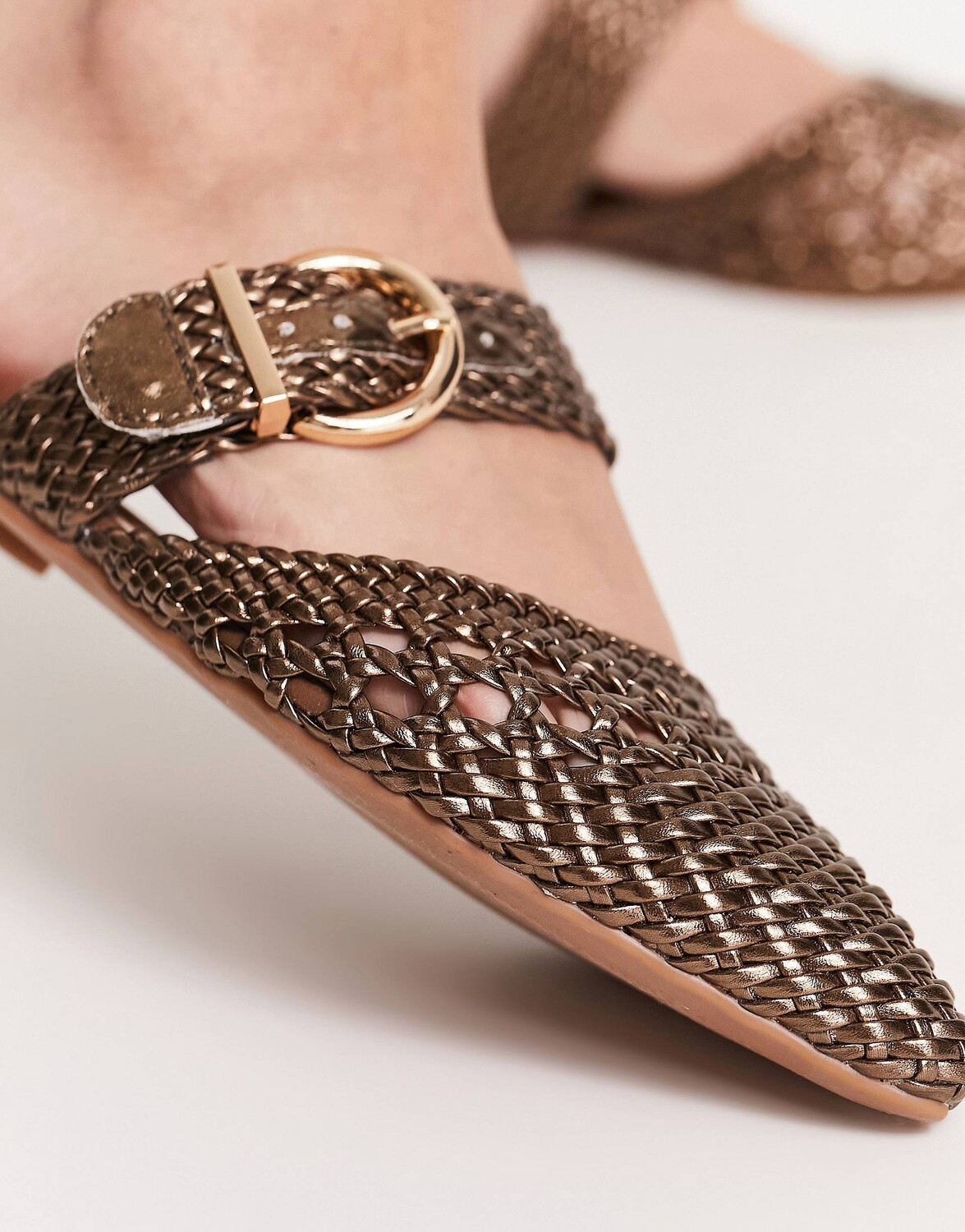 Бронзовые плетеные балетки с острым носком ASOS DESIGN Lisbon