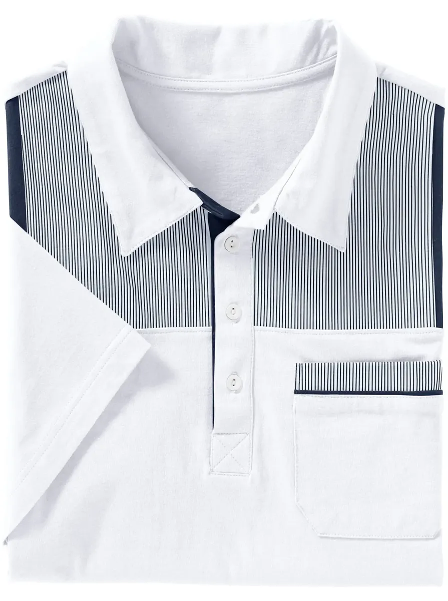 Рубашка-поло с мужским узором. Контрастная окантовка на нагрудном кармане. С поясом для идеальной посадки. Одинарный трикотаж. 100% хлопок. Машинная стирка.