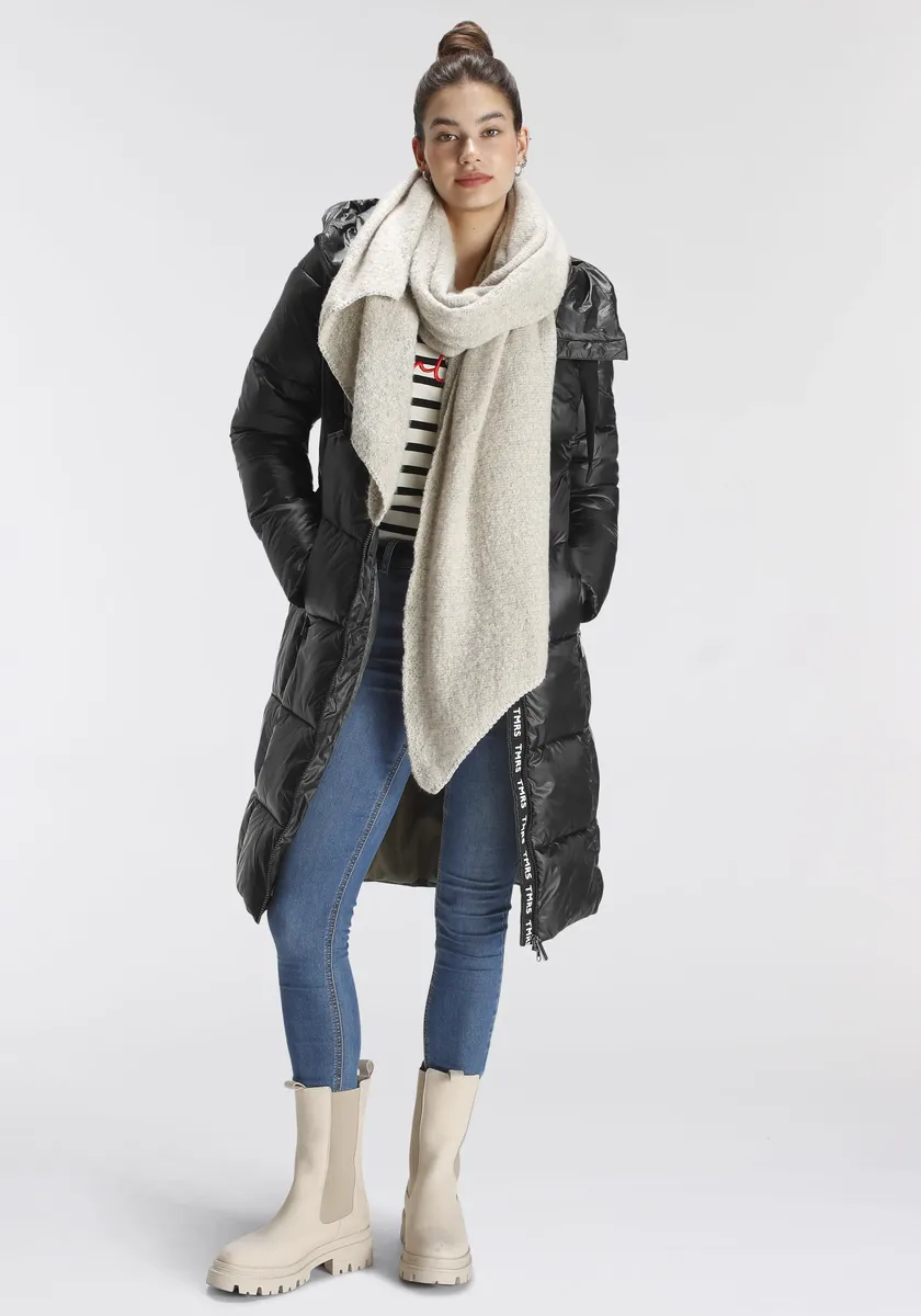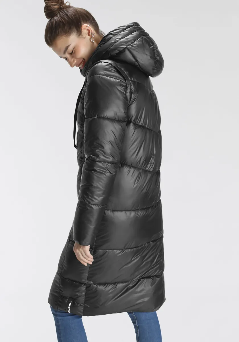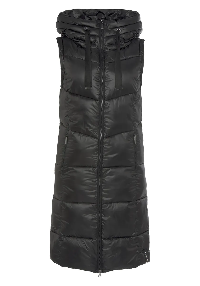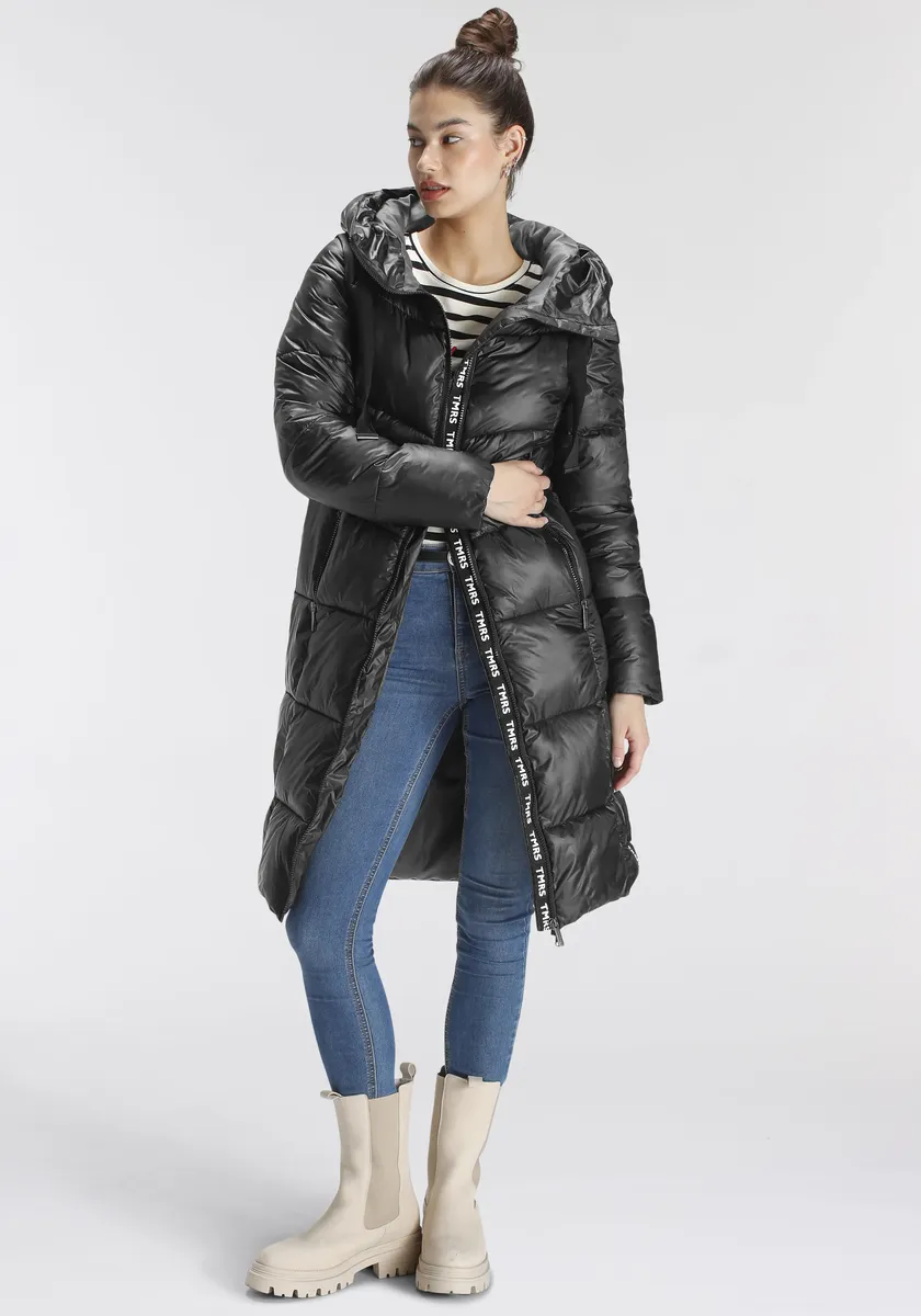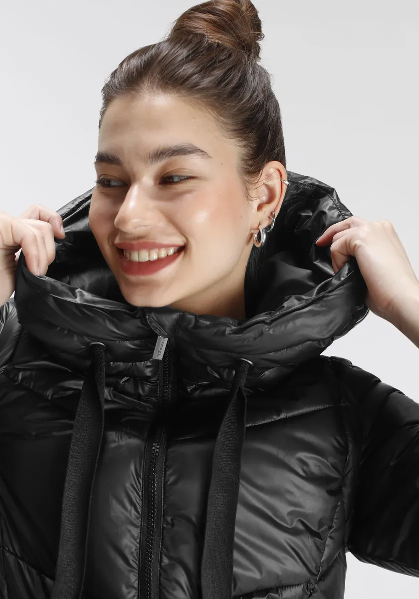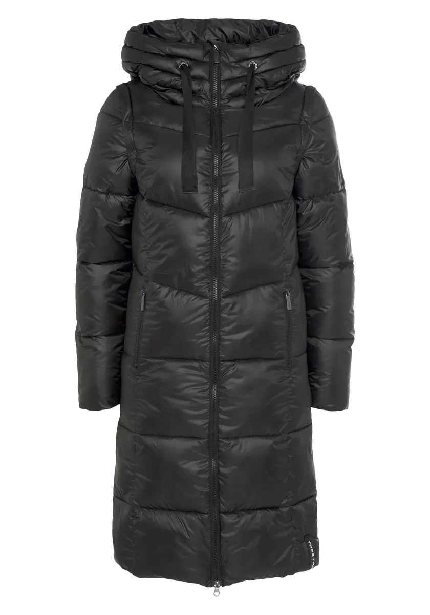 Стеганое пальто Tamaris с большим капюшоном и съемными рукавами, черный
