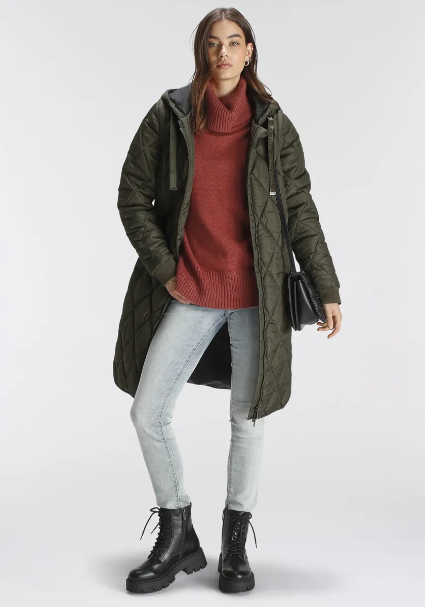 Стеганое пальто Tamaris со съемными рукавами, хаки
