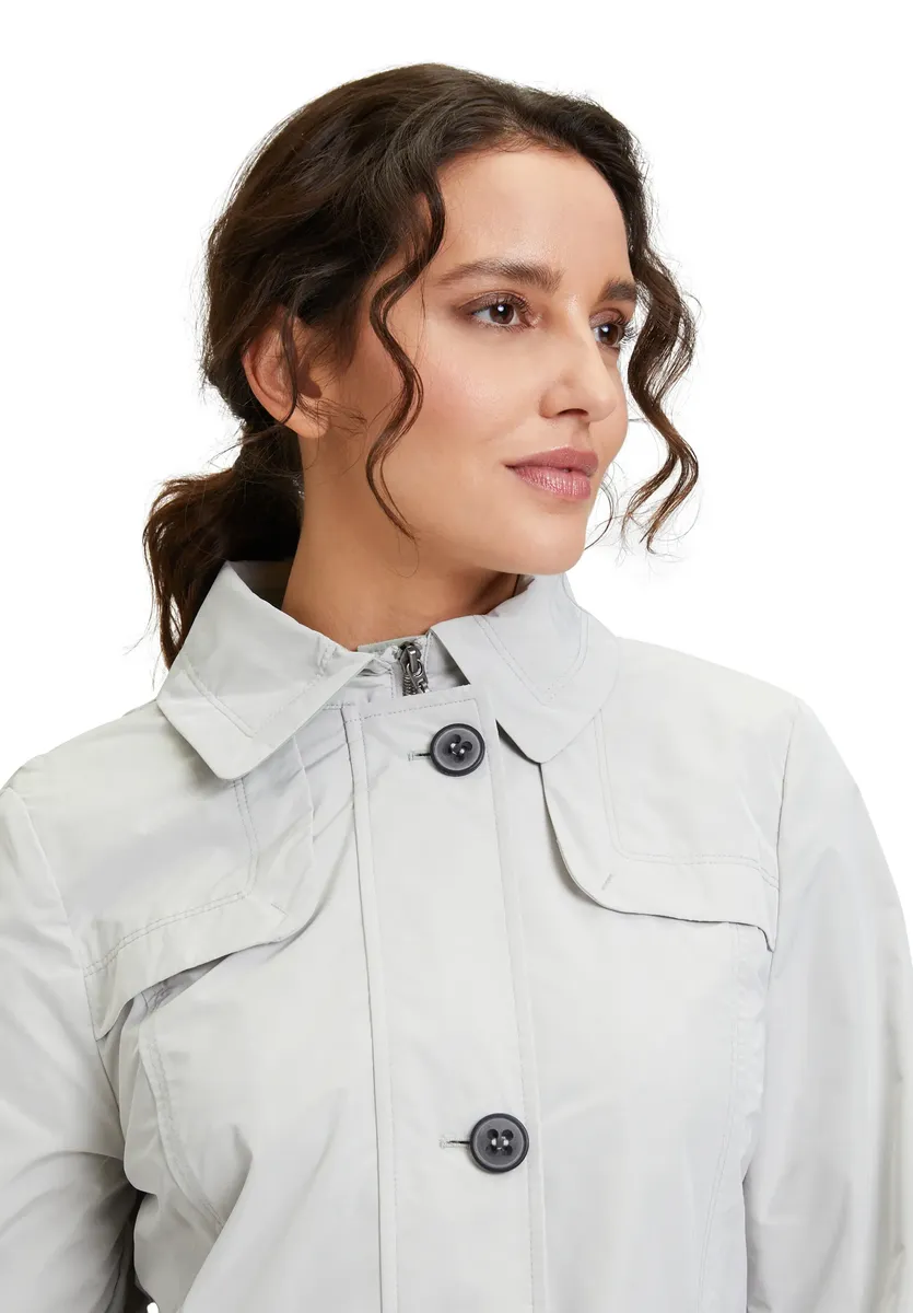Температура падает, но настроение поднимается – с женским тренчем от Gil Bret. Пальто с блузочным воротником длинное, облегающее фигуру. Ценные вещи надежно хранятся в карманах на кнопках и не могут легко выпасть. Тренч изготовлен из стабильного по размерам материала и почти не мнется. Его можно сочетать с шикарным нарядом для офиса или ужина с друзьями.