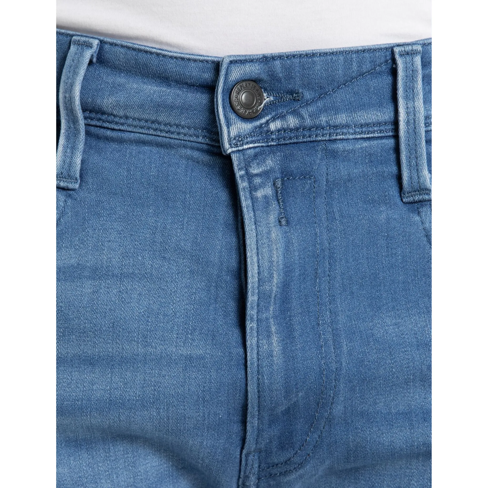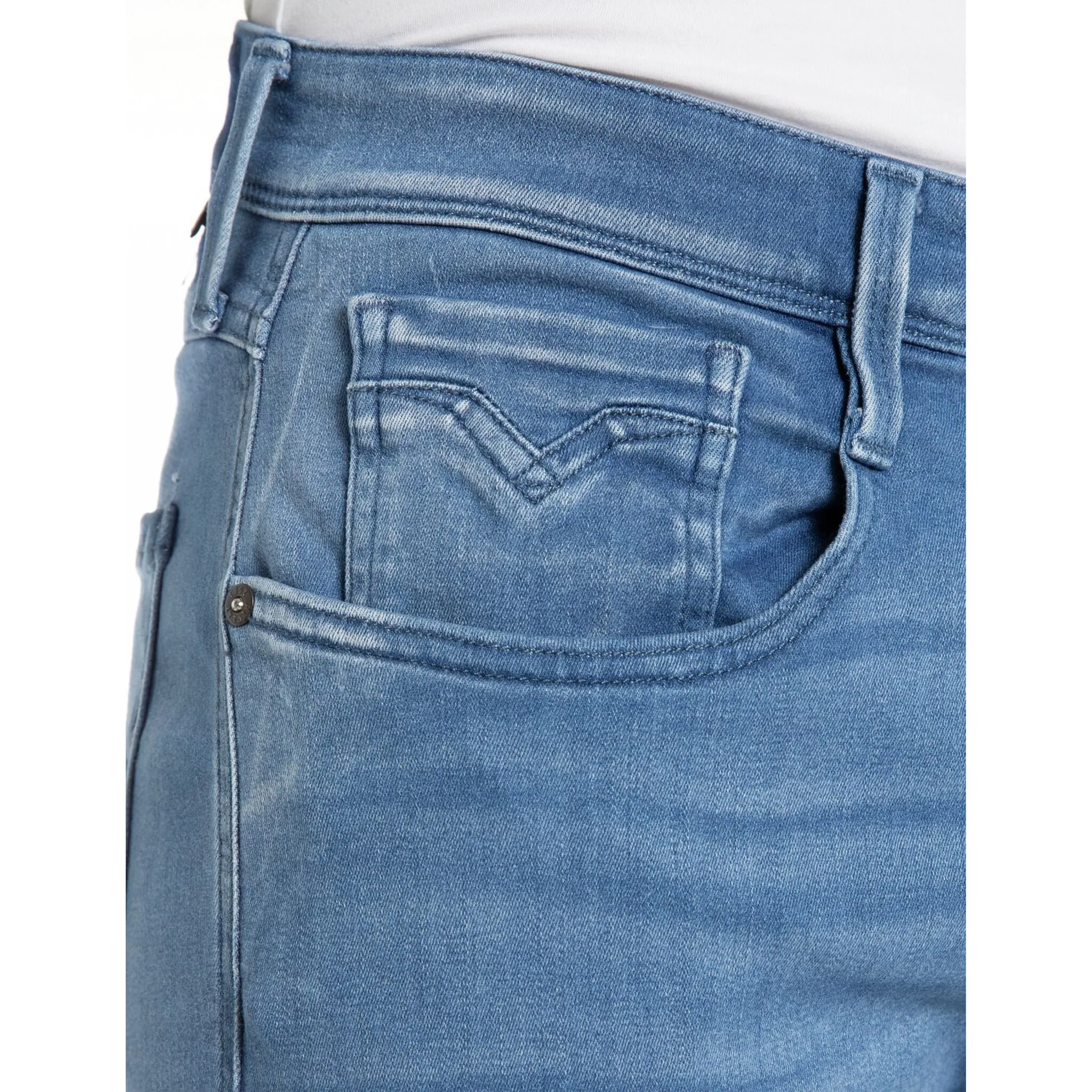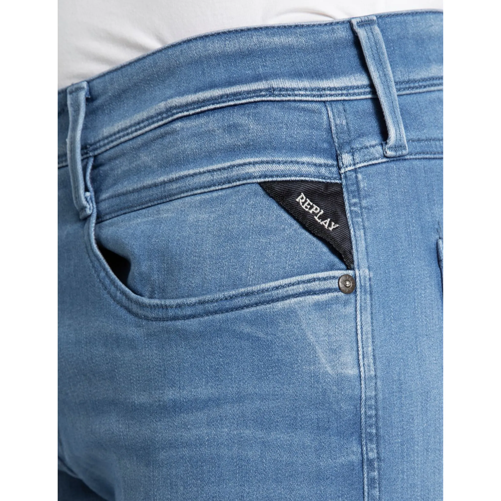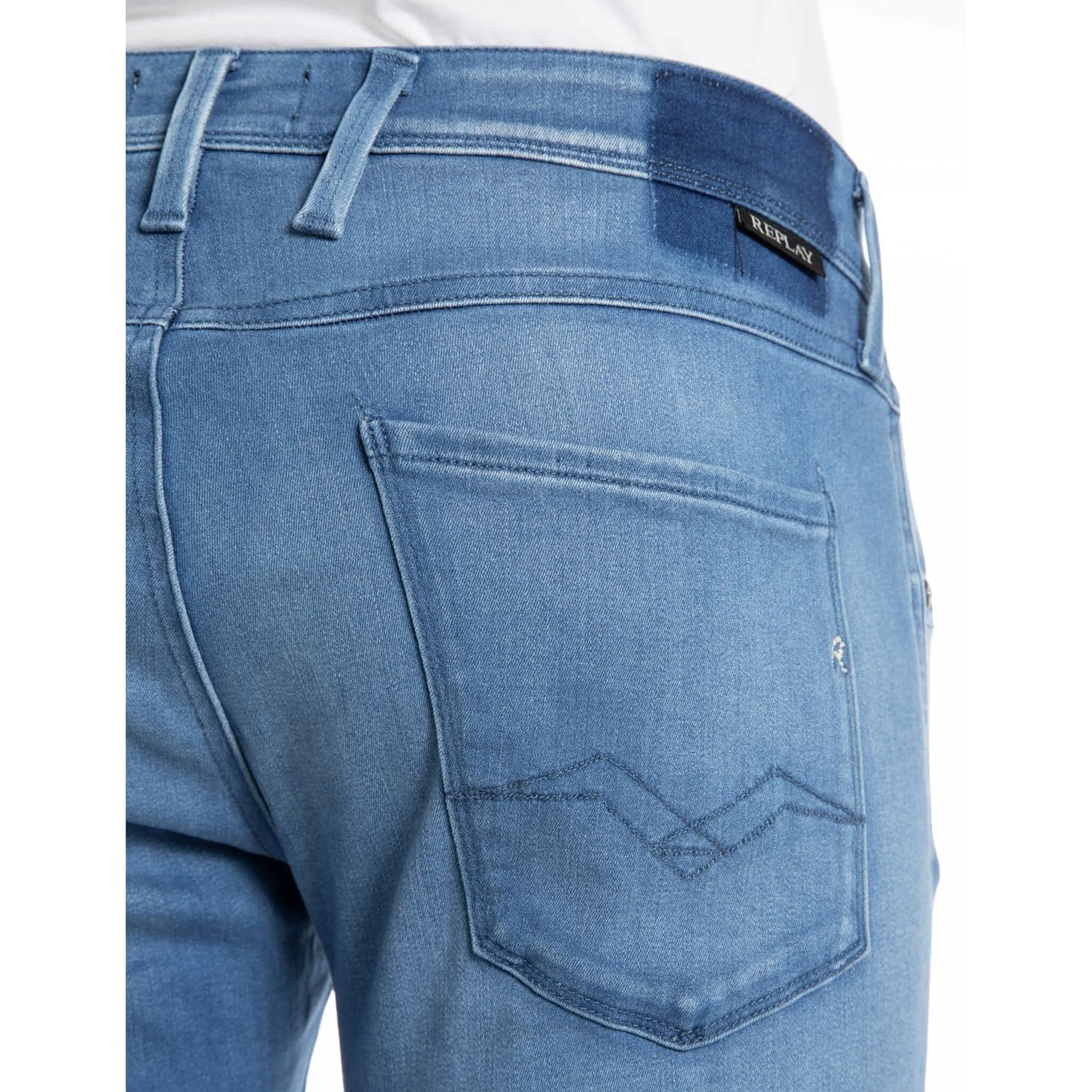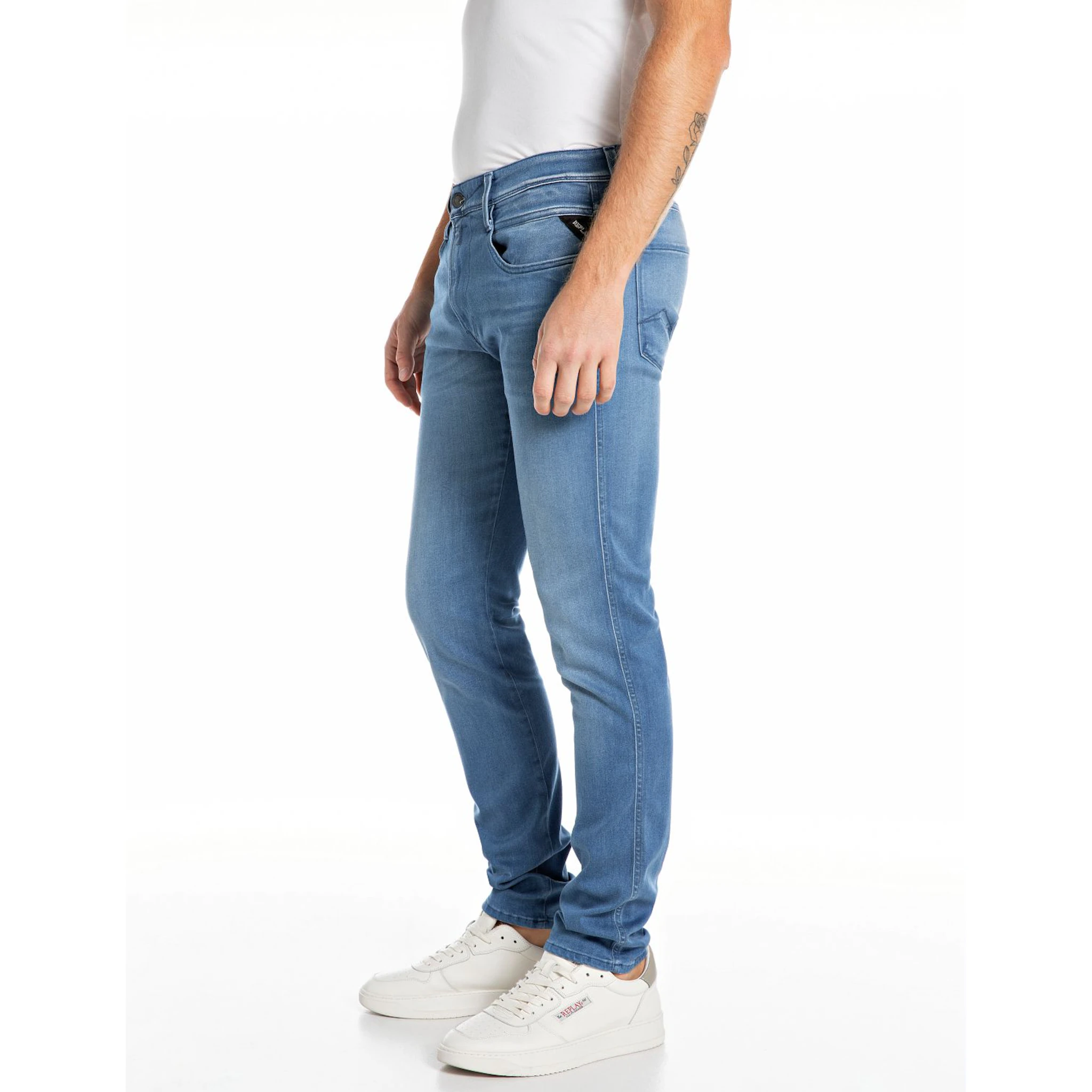 Облегающие фигуру мужские джинсы узкого кроя от бренда Replay. Узкая форма штанин и классическая высота талии. Оснащен фирменной этикеткой. Можно комбинировать различными способами для проведения досуга. Брюки просты в уходе и долговечны благодаря прочной джинсовой ткани.