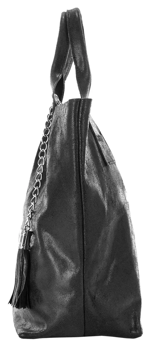 Повседневная кожаная сумка-шопер от сорока градусов с декоративными подвесками-кисточками. Просторное внутреннее отделение с магнитной застежкой и два усиленных плечевых ремня делают кожаную сумку прекрасным спутником!* Высота 35 х ширина 42 х глубина 19 см * Производство Италия* Изготовлено из 100% коровьей кожи* Просторное основное отделение с магнитной кнопкой* Дополнительная кожа сумка на цепочке* 2 ручки для переноски * Тиснение логотипаРазмер выпуска: один размерОсобенности: натуральная кожа, Производство ИталияШирина: 42 смПапка А4: да (макс. ширина 7 см)Основная застежка: магнитная застежкаВнутренний цвет: черныйВнутренний вид: соответствующий цветПлечевой ремень: нетДополнение к названию: натуральная кожа, Производство ИталияВес: 500Высота: 35 смГлубина: 19 смРазмер: один размерВнутренний карман: нетРемень (длина в см): нетФормат: альбомныйВнешний материал: 100% коровья кожаРучка для переноски: двойная ручка (мягкая)Внешний вид: блестящийВнутренний материал: Без подкладкаВес: 0,5 кгКоличество основных отделений: 1Застежка основных отделений: магнитная застежкаЗадний карман: нет