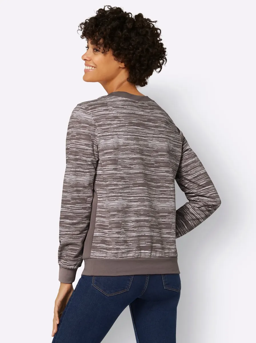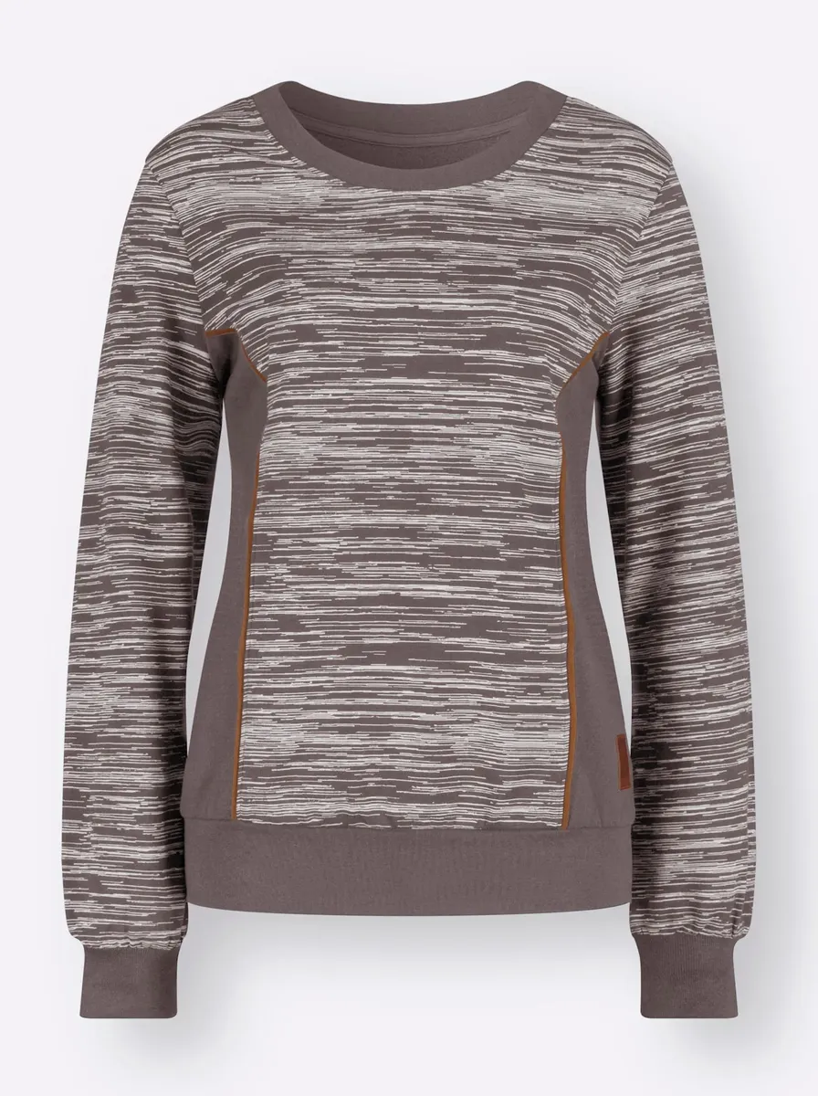 Повседневная модель, подчеркивающая фигуру! Изюминка этого свитшота – однотонные вставки по бокам, которые стройнят! С круглым вырезом горловины и формирующими венскими швами. Эластичные манжеты на длинных рукавах и по низу. Мягко начесанный внутри. Поддержите инициативу «Хлопок, сделанный в Африке». 50% хлопок, 50% полиэстер. Машинная стирка.