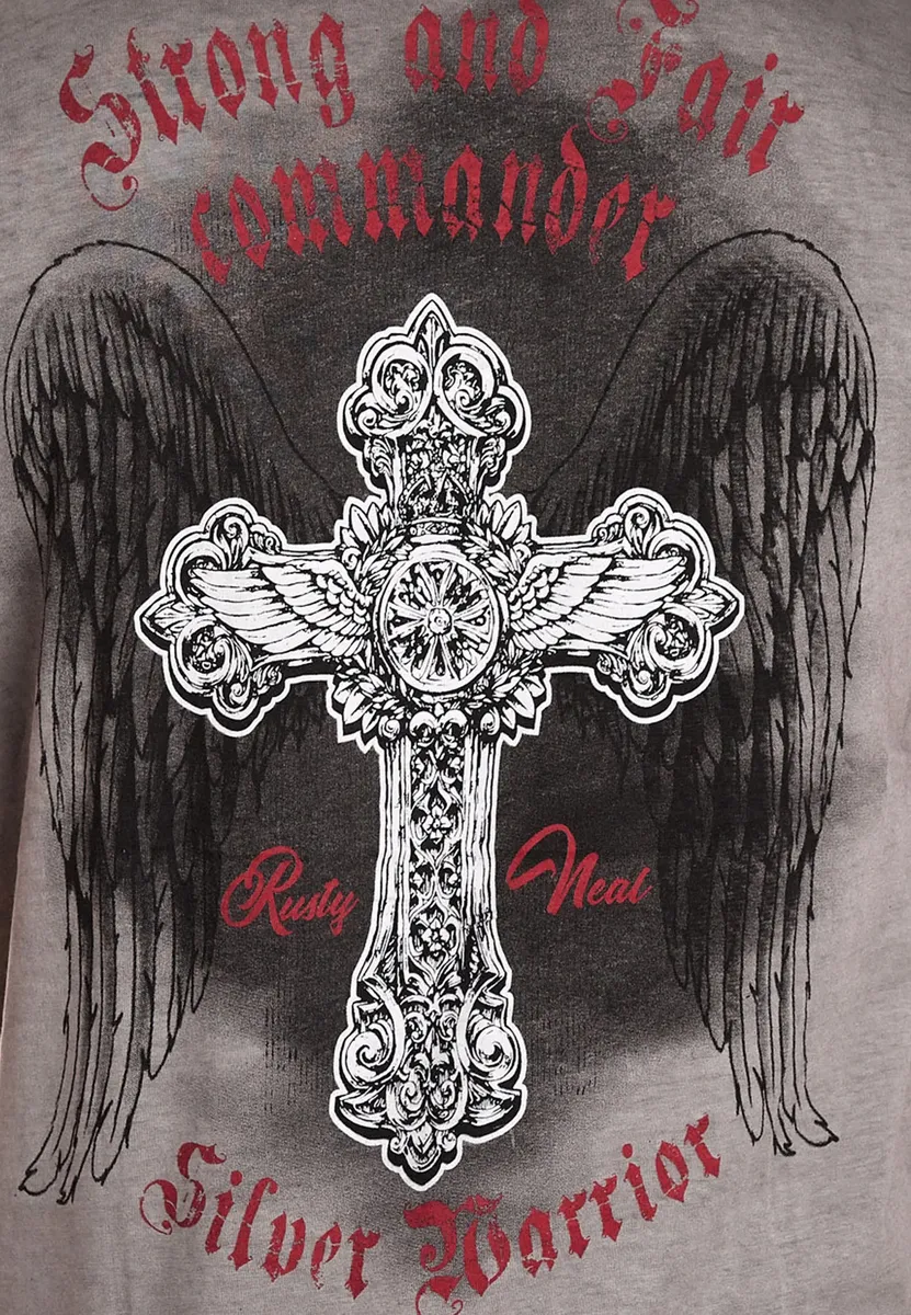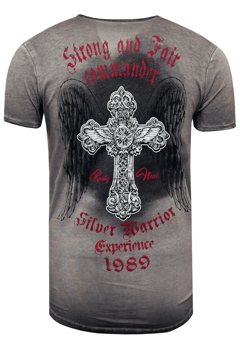 Эта модная мужская футболка от Rusty Neal впечатляет модной планкой на пуговицах на вырезе, которую можно носить небрежно расстегнутой. Дизайн завершается большой спинкой и соответствующим принтом на груди. Наша модель ростом 1,85 м весит более 80 кг и носит размер М.