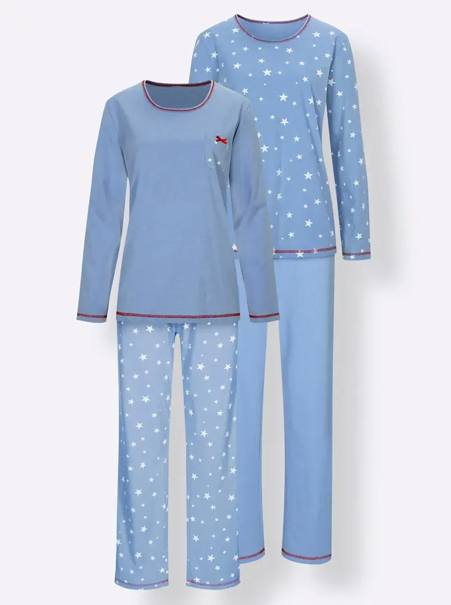 Обычный или печатный? Желательно оба! Пижамы в доступной двойной упаковке. С круглым вырезом и практичным нагрудным карманом. Брюки с удобным эластичным поясом. Контрастные декоративные швы привлекают внимание. Качество одиночного трикотажа. 100% хлопок.