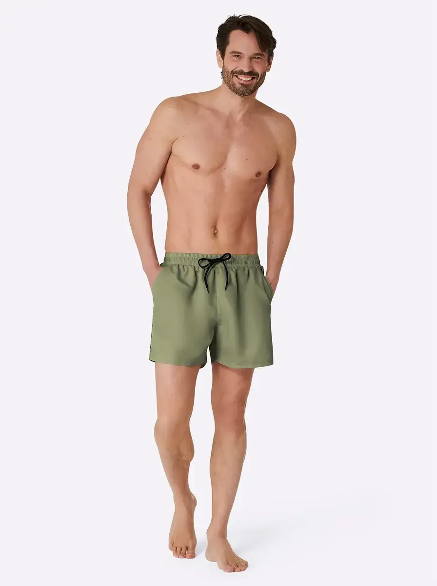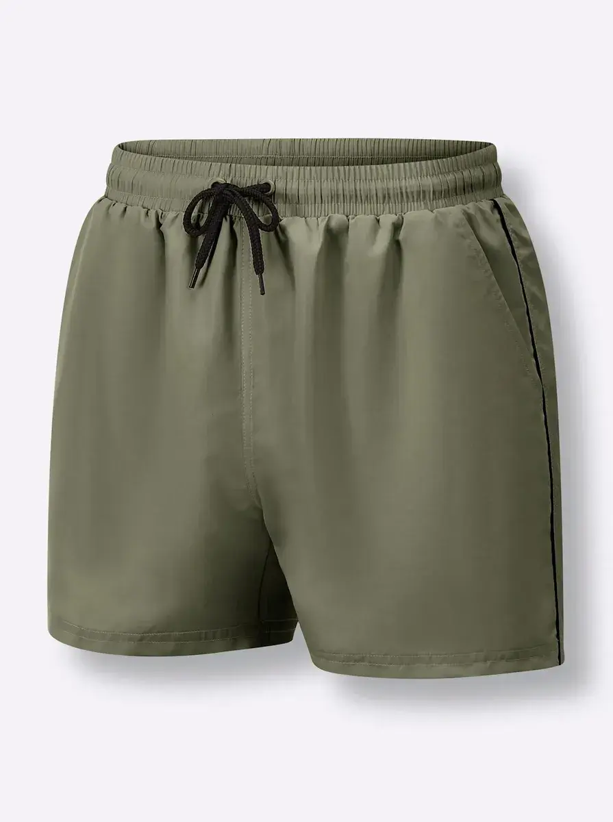 С декоративной окантовкой сбоку: шорты для плавания с эластичным поясом, кулиской, 2 карманами и встроенными трусами. 100% полиэстер.