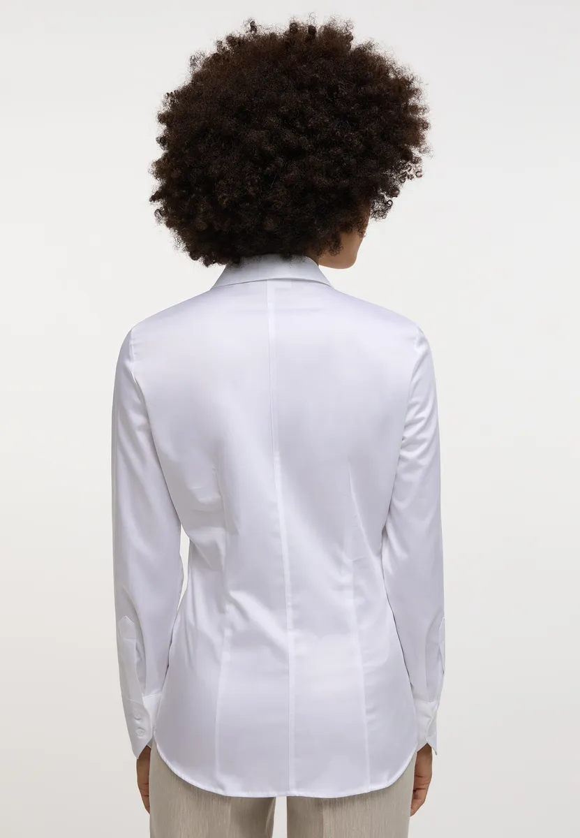 Эта однотонная атласная рубашка эластична, с тонким мерцанием и элегантна. Она незаменима для женственных деловых образов и стильных моментов. Нежный блеск атласной ткани (95 % хлопок, 5 % эластан, СТРЕЙЧ, легко гладится) выглядит элегантно и легко гладится. делает эту блузку (длина по спинке 67 см) особенной. Воротник рубашки и планка на пуговицах во всю длину со вкусом дополняют внешний вид этой приталенной блузки. Ее сверхтонкий силуэт достигается за счет вытачек спереди и сзади. , которые четко подчеркивают фигуру. Благодаря эластичному материалу эта модель гарантированно обеспечивает оптимальную свободу движений. Закажите эту вневременную блузку онлайн сегодня!