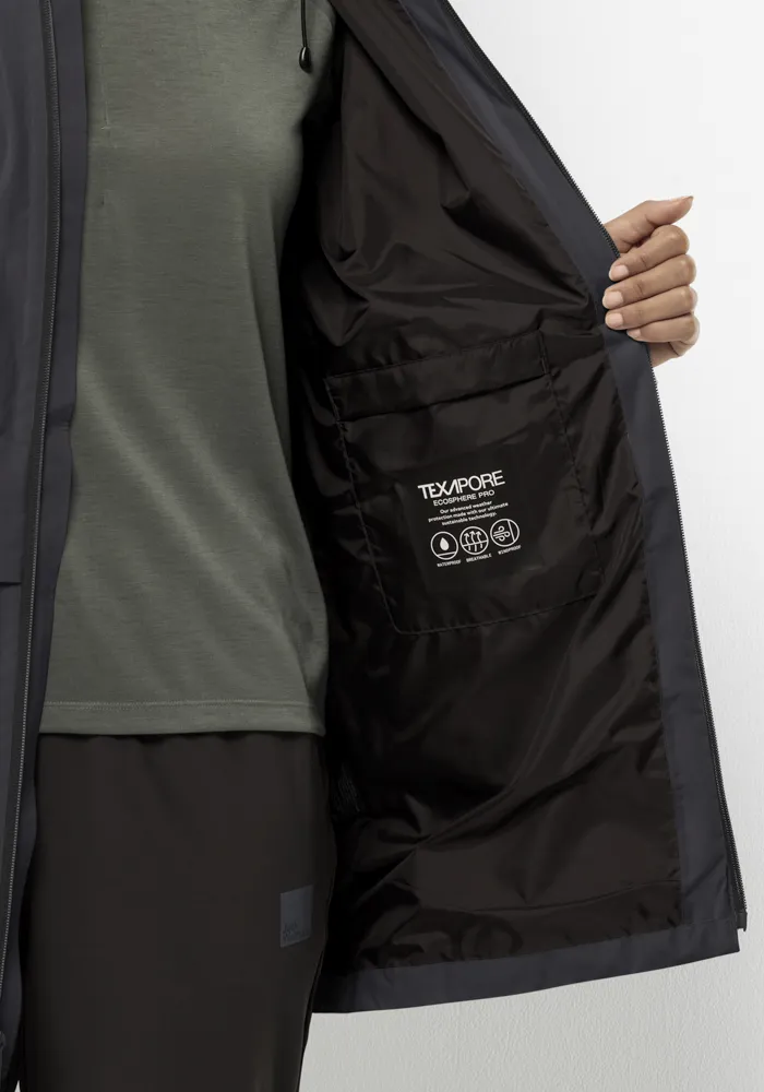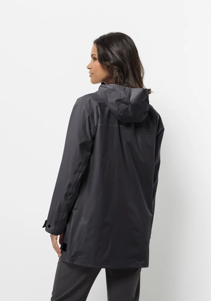 Длинная куртка Jack Wolfskin "MAINKAI LONG JKT W", с капюшоном, цвет Phantom