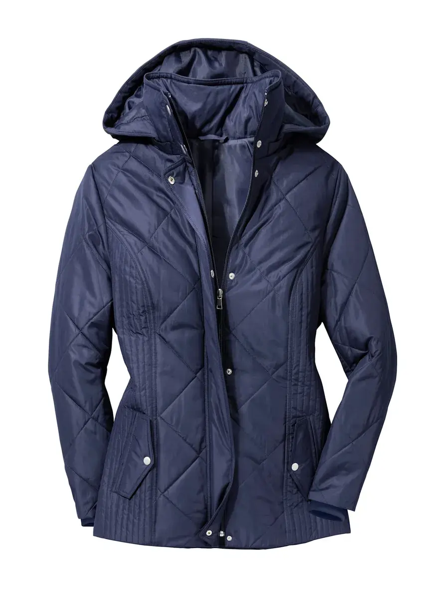 Он согреет и согреет вас в холодные дни! Куртка с привлекательным стеганым узором, воротником стойкой, съемным капюшоном и планкой на кнопках. 2 кармана с клапанами. Ребристые манжеты на рукавах защищают от ветра и влаги. Венские швы для идеальной посадки. Вертикальная стежка по бокам визуально удлиняет изделие. 100% полиэстер. Подкладка и наполнитель: 100% полиэстер. Машинная стирка.