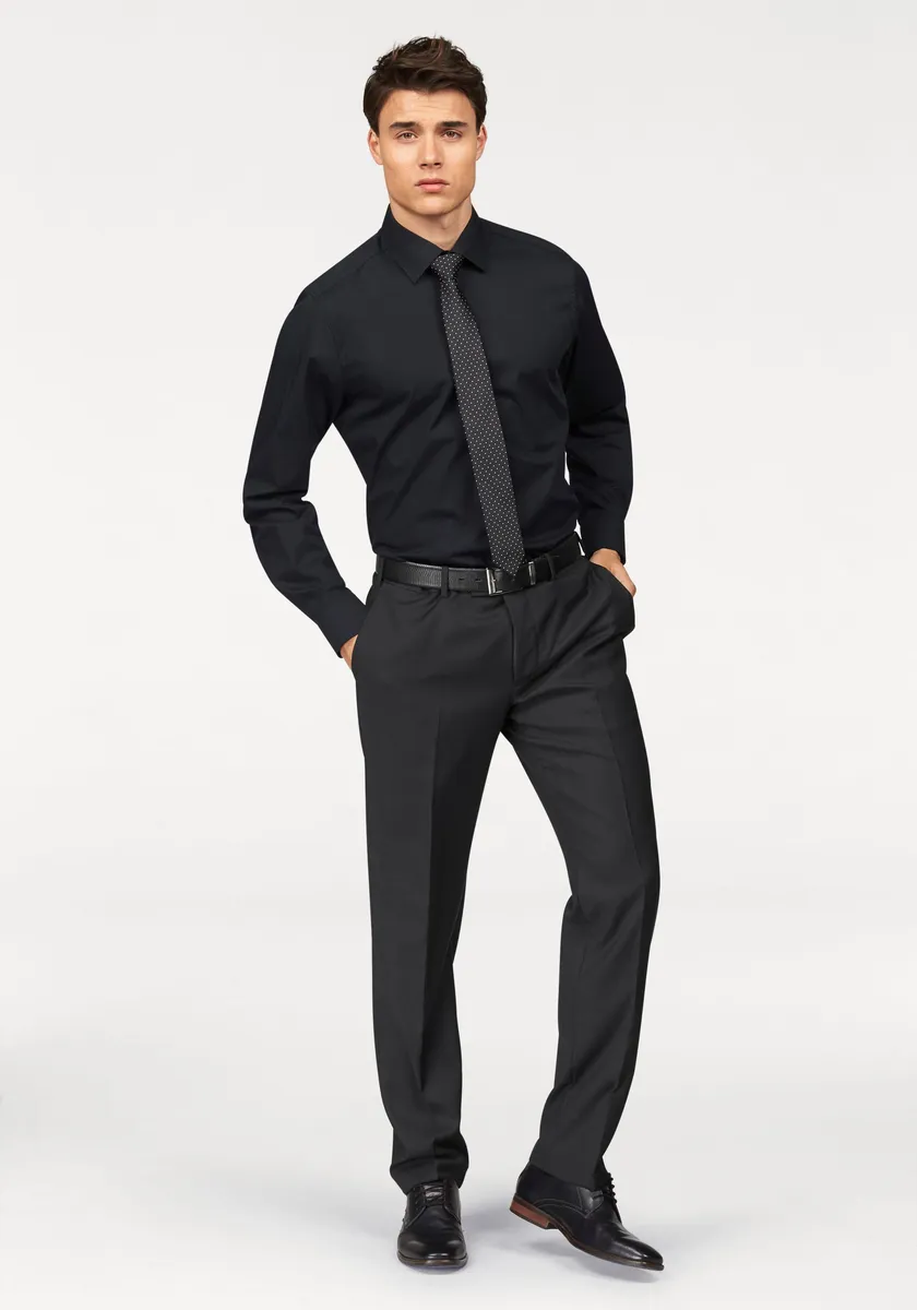 Оптимальная посадка: узкий крой для современного силуэта (Slim Fit/Body Fit). Идеально для офиса: элегантная деловая рубашка с классическим воротником «Кент». Высокий комфорт при ношении: эластичный хлопок адаптируется к вашим движениям. Простота в уходе и долговечность: высококачественный материал, состоящий из 97 % хлопка и 3 % эластолефина. Практичные детали: регулируемые рукава и круглая манжета с одной пуговицей для индивидуальной регулировки.