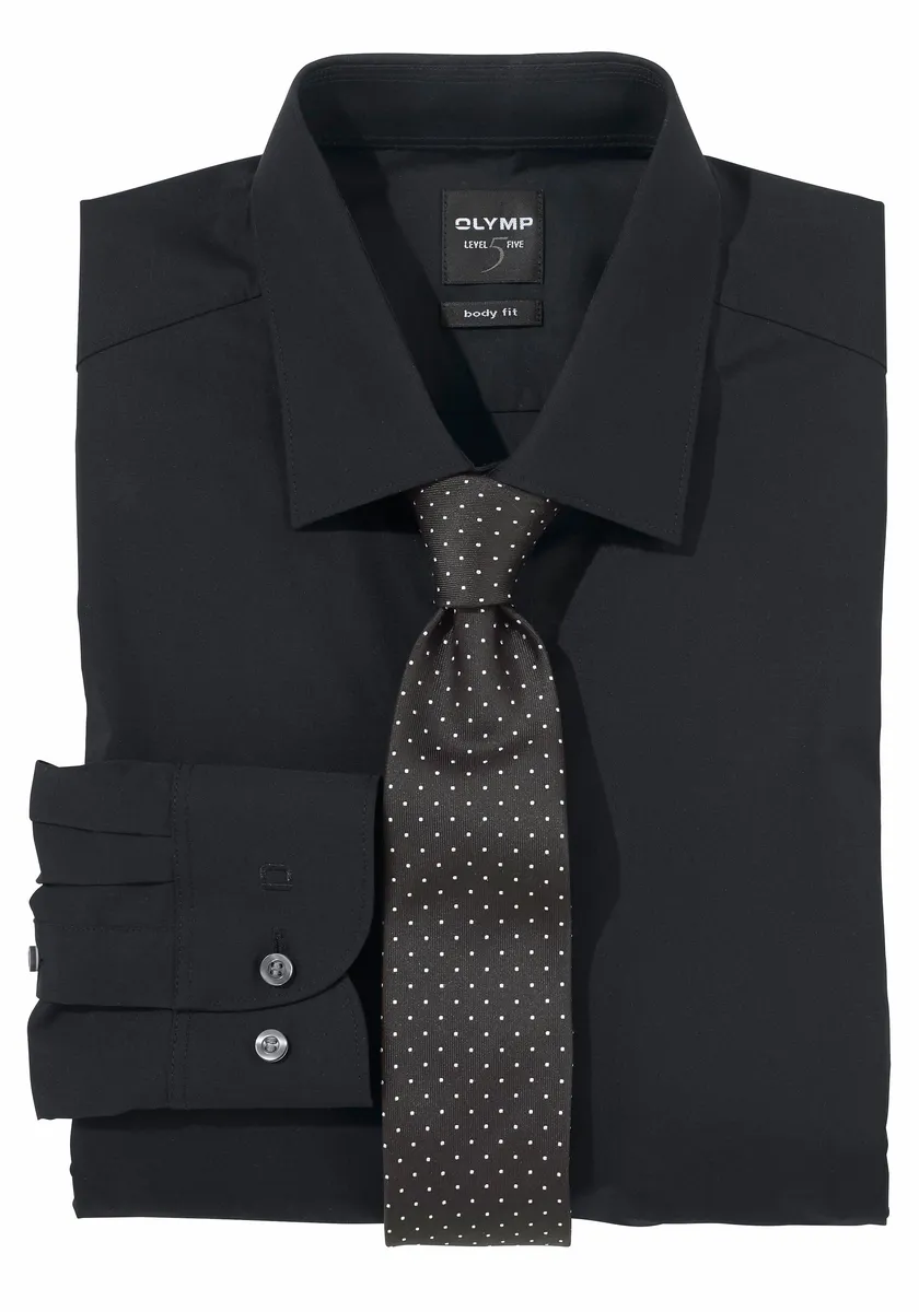 Деловая рубашка OLYMP "Level Five Body Fit", сохраняет форму благодаря эластану, черный