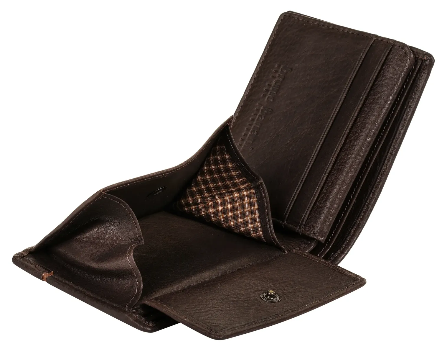 С кожаным кошельком от bruno Banani вы всегда сможете следить за своими финансами. Благодаря удобному формату кошелек идеально помещается в карманы куртки и брюк. Двойной складной кошелек оснащен различными вариантами отделения для карт, наличных и многого другого. RFID-защита от несанкционированного считывания данных вашей личной карты обеспечивает дополнительную безопасность.* 100% воловья кожа* 1 отделение для монет с застежкой-кнопкой* 2 отделения для купюр* 4 отделения для карт* 2 слота* 1 видимое отделение* складывается вдвое* RFID-защита от несанкционированного доступа via Scan* тонкое тиснение логотипа спереди* особенно легкийОсобенности: натуральная кожаДополнение к названию: натуральная кожаШирина: 8 смВес: 100Высота: 10 смГлубина: 2 смКоличество внутренних карманов: 2Количество отделений для карт: 4Количество отделений для купюр: 2Количество видимых карманов: 1Внешний материал: 100% коровья кожаРазмер: один размерОсновная застежка: Без застежкиВнутренний материал: Материал -СмешанныйВнутренний вид: соответствующий цветВес: 0,1 кгОтделение для монет: есть (кнопка)Вид Поверхность: однотонная - шелковистая блестящаяОбъем: 0,1Формат: альбомный формат