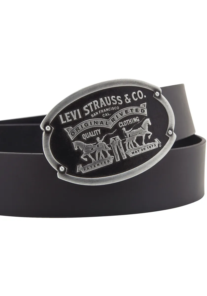 Кожаный ремень Levi's Billy Plaque Belt с характерной пряжкой, черный