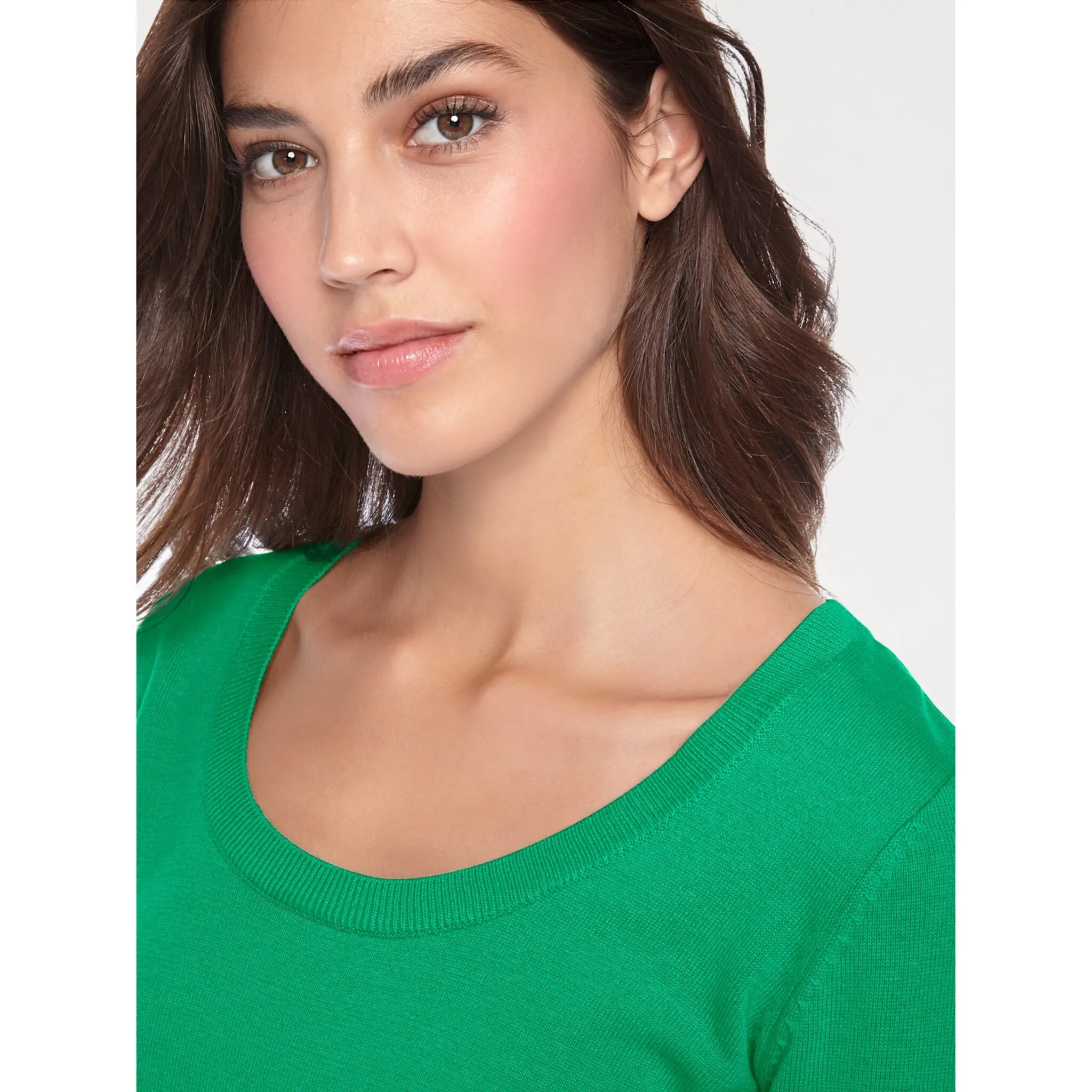 Повседневный свитер с круглым вырезом из удобного тонкого хлопкового трикотажа. Облегает фигуру, с большим круглым вырезом, длинными рукавами и ребристыми манжетами. 100% хлопок. Машинная стирка.
