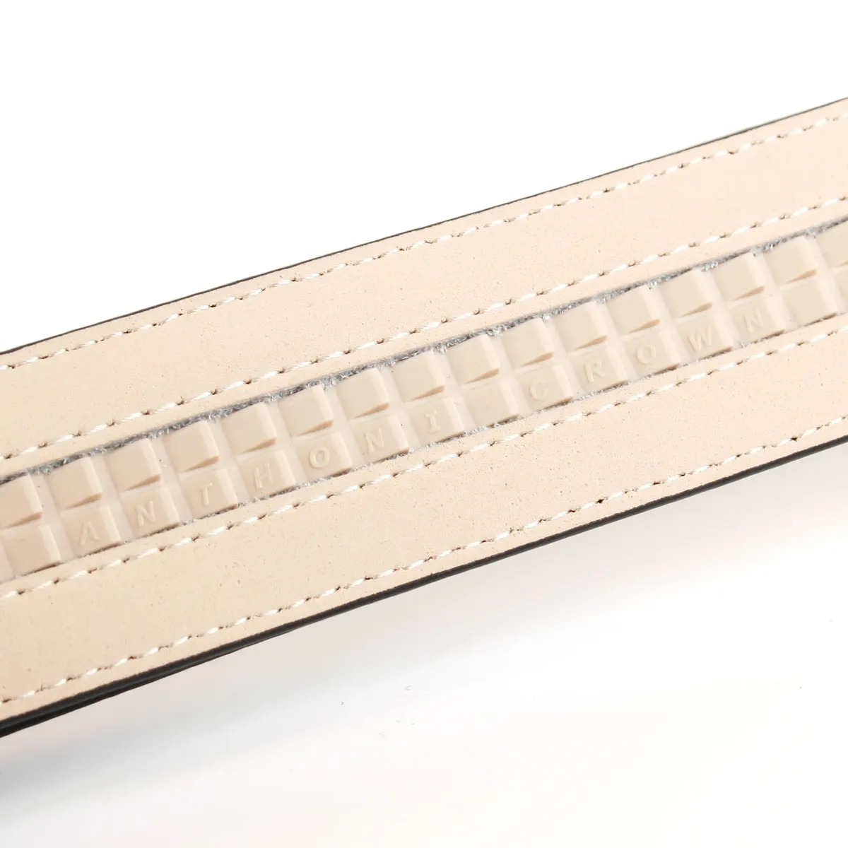 Мужской кожаный ремень от бренда Anthoni Crown повседневного дизайна. Материал отличается высоким качеством и особой прочностью. Благодаря ширине 3,5 см он одинаково хорошо сочетается как с шикарными брюками, так и с повседневными джинсами. Подходящая вещь для деловой вечеринки или офиса – ремень и туфли в тон сделают образ еще более шикарным.