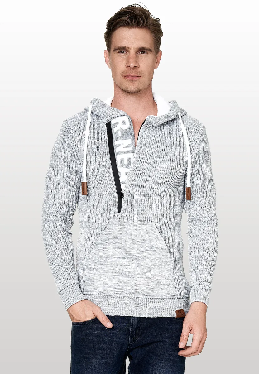 Мужской свитер Rusty Neal впечатляет стильным вырезом с логотипом бренда. Свитер изготовлен из комфортной смеси полиакрил-хлопка крупной вязки. Повседневный капюшон на шнурке идеально дополняет дизайн. Наша модель ростом 1,85 м весит более 80 кг, носит размер М (средний).