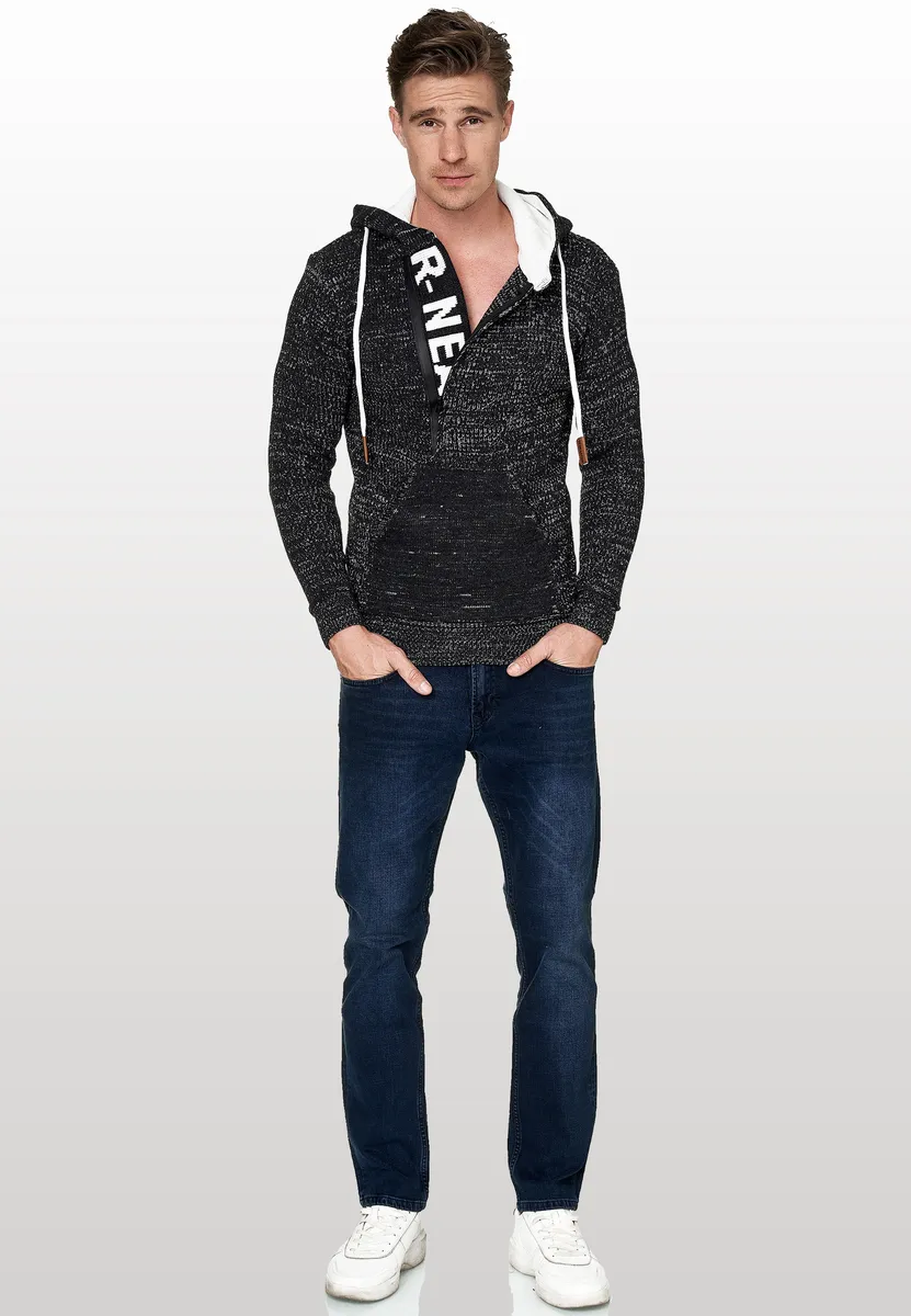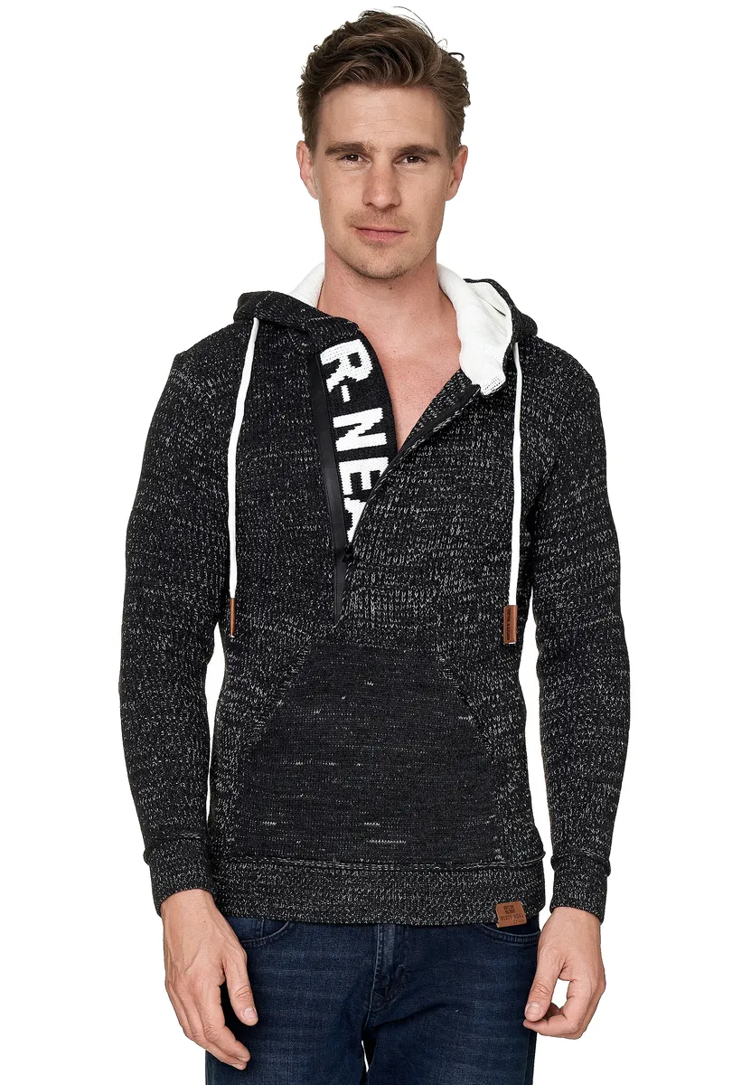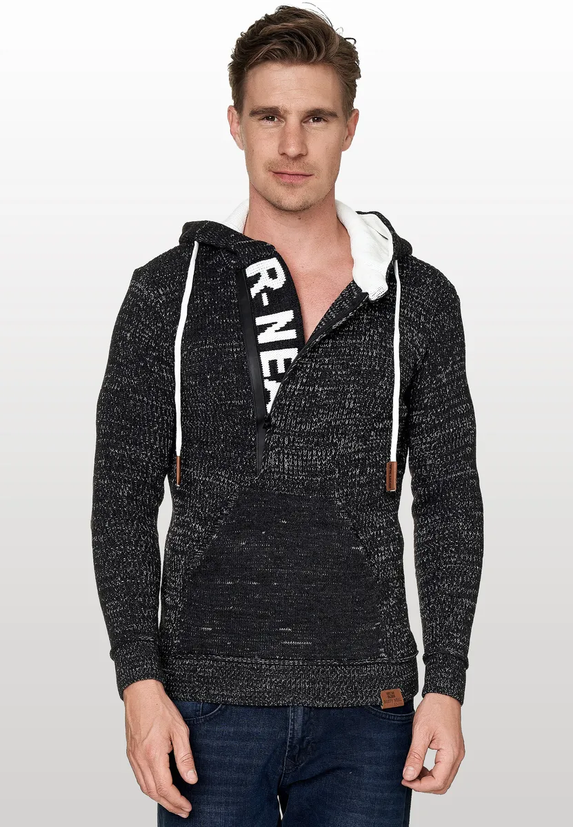Мужской свитер Rusty Neal впечатляет стильным вырезом с логотипом бренда. Свитер изготовлен из комфортной смеси полиакрил-хлопка крупной вязки. Повседневный капюшон на шнурке идеально дополняет дизайн. Наша модель ростом 1,85 м весит более 80 кг, носит размер М (средний).