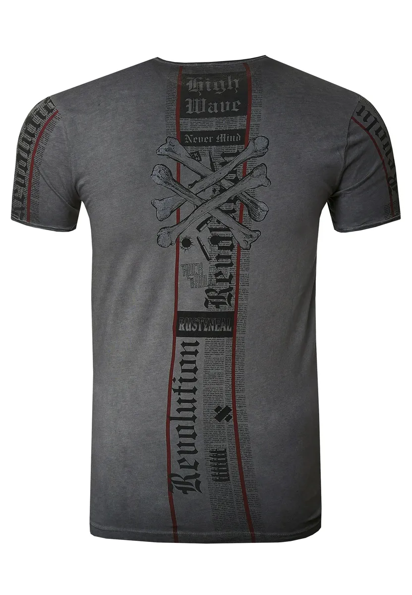 Эта рубашка изготовлена ​​из мягкого, высококачественного и эластичного хлопка. Универсальная футболка гарантирует стильный внешний вид. Благодаря качественному исполнению материалов, цвет после стирки не теряется, а усадка футболки больше не проблема! Модель известного модного бренда Rusty Neal впечатляюще показывает, насколько современной и в то же время вневременной может быть футболка. Рубашка изготовлена ​​в справедливых условиях труда, с очень хорошим качеством швов и из высококачественных материалов, прошедших тщательную обработку. Весной, летом, осенью или зимой эту футболку всегда удобно носить как универсальную вещь. Рост модели 1,85 м, вес более 80 кг, размер футболки: M (средний).