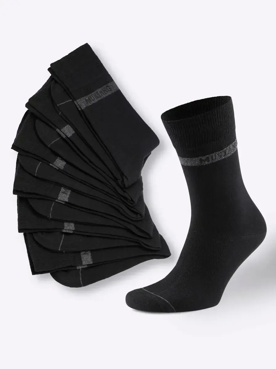 От Mustang: мужские носки в практичной упаковке по 6 пар из качественного и удобного хлопка. Древко украшено надписью по всему периметру. Носок и пятка усилены. 73% хлопок, 23% полиэстер, 2% полиамид, 2% эластан.