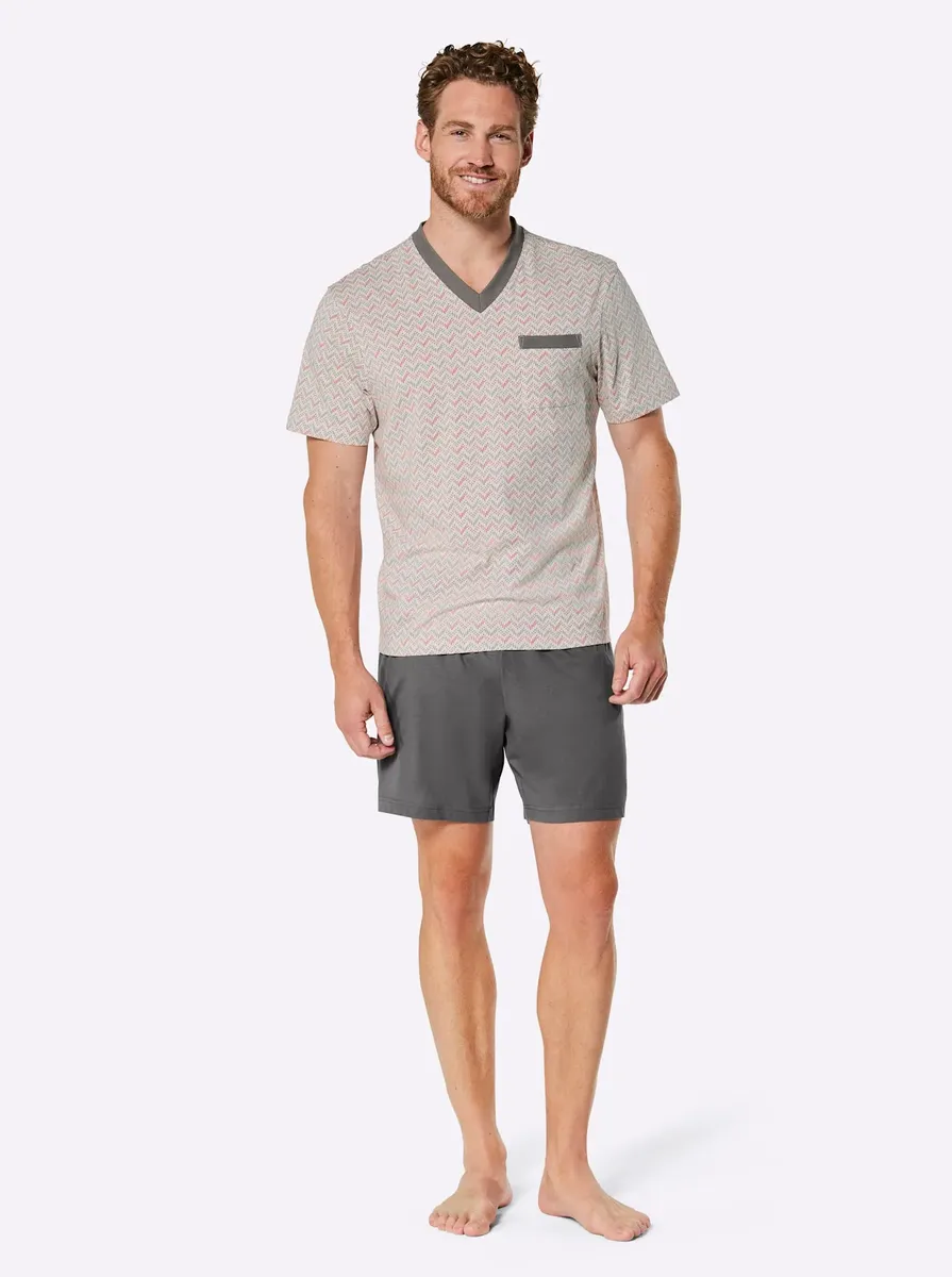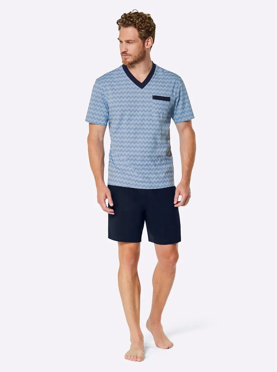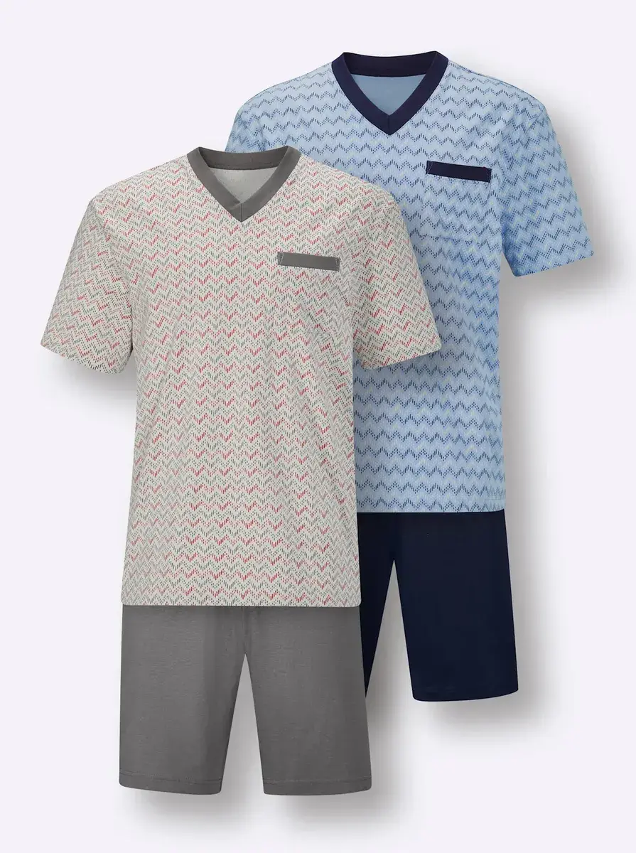 От компании Waschpur: шорты Shortys в практичной двойной упаковке. Топы с графическим принтом и контрастными контрастами на ребристом V-образном вырезе и накладном нагрудном кармане. Однотонные брюки с удобным эластичным поясом по всему периметру. Одинарный трикотаж из чистого хлопка. 100% хлопок.