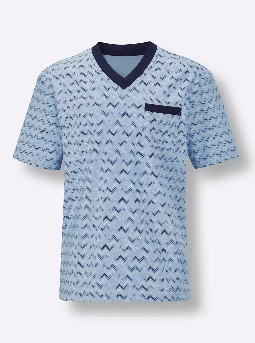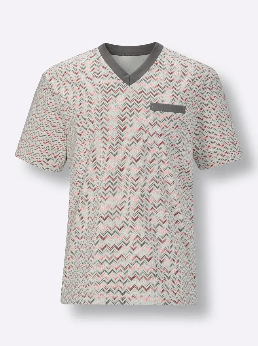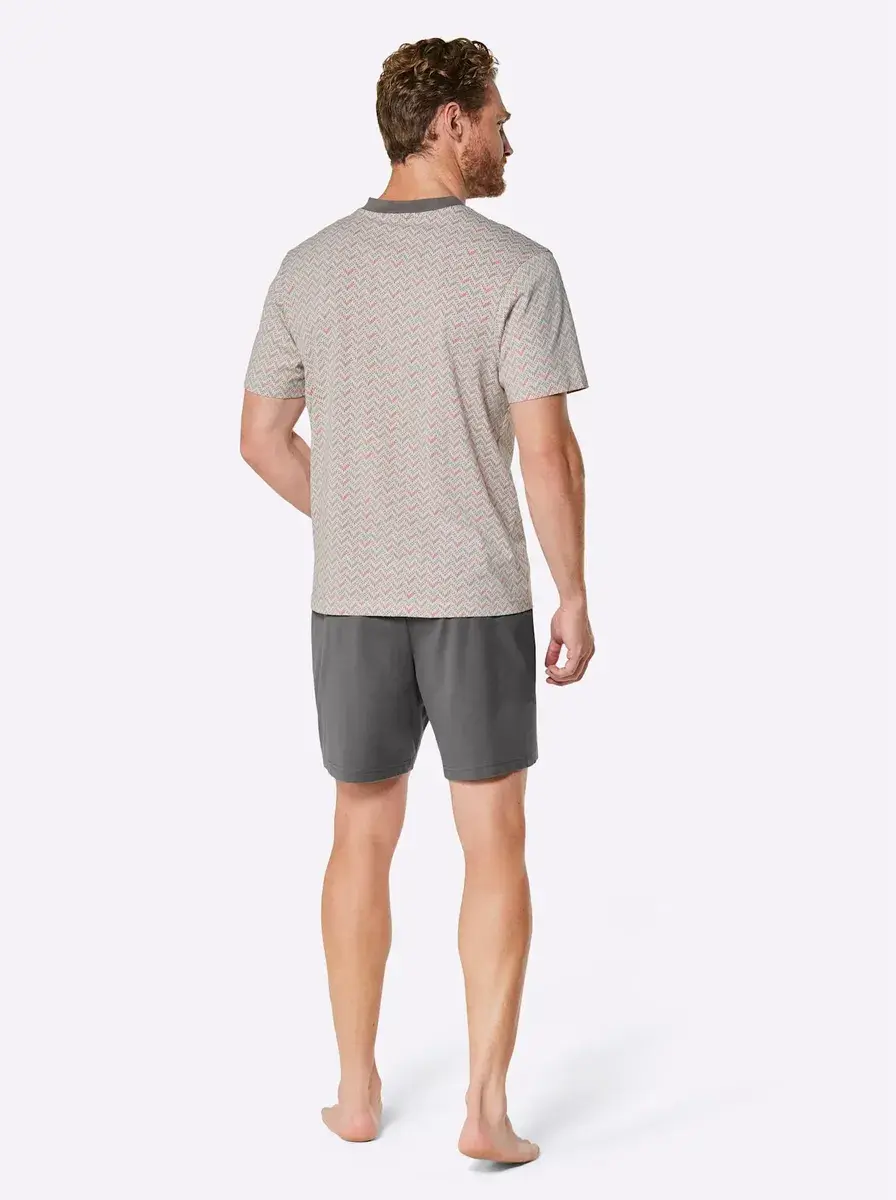 От компании Waschpur: шорты Shortys в практичной двойной упаковке. Топы с графическим принтом и контрастными контрастами на ребристом V-образном вырезе и накладном нагрудном кармане. Однотонные брюки с удобным эластичным поясом по всему периметру. Одинарный трикотаж из чистого хлопка. 100% хлопок.