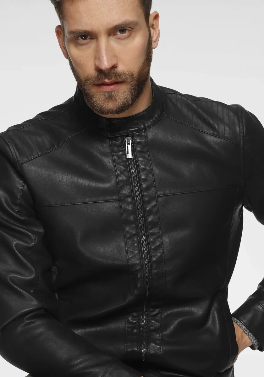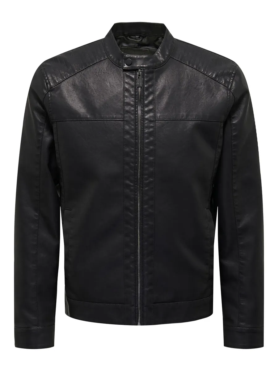 Байкерская куртка ONLY & SONS "ONSMIKE PU RACER JACKET OTW VD NOOS", черный