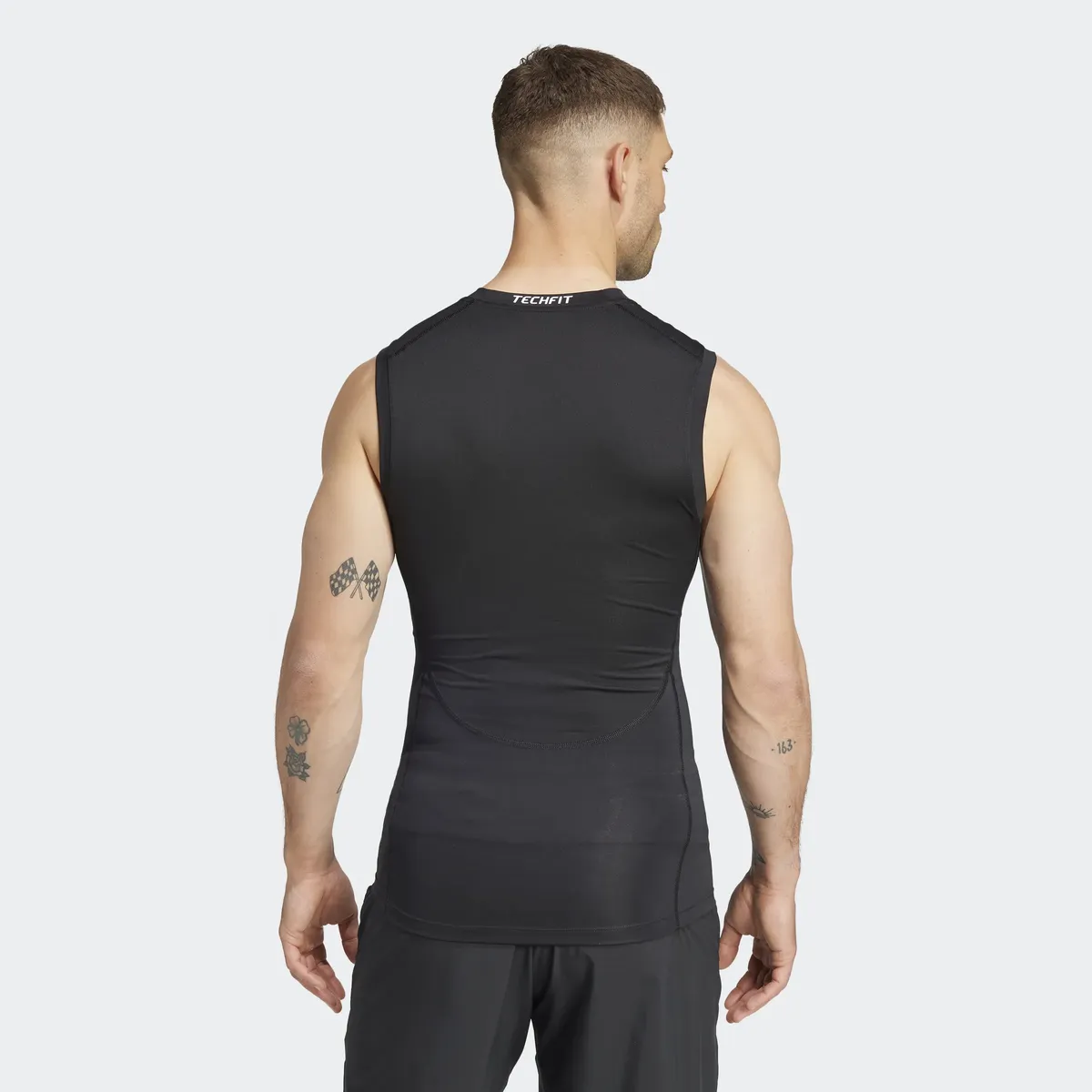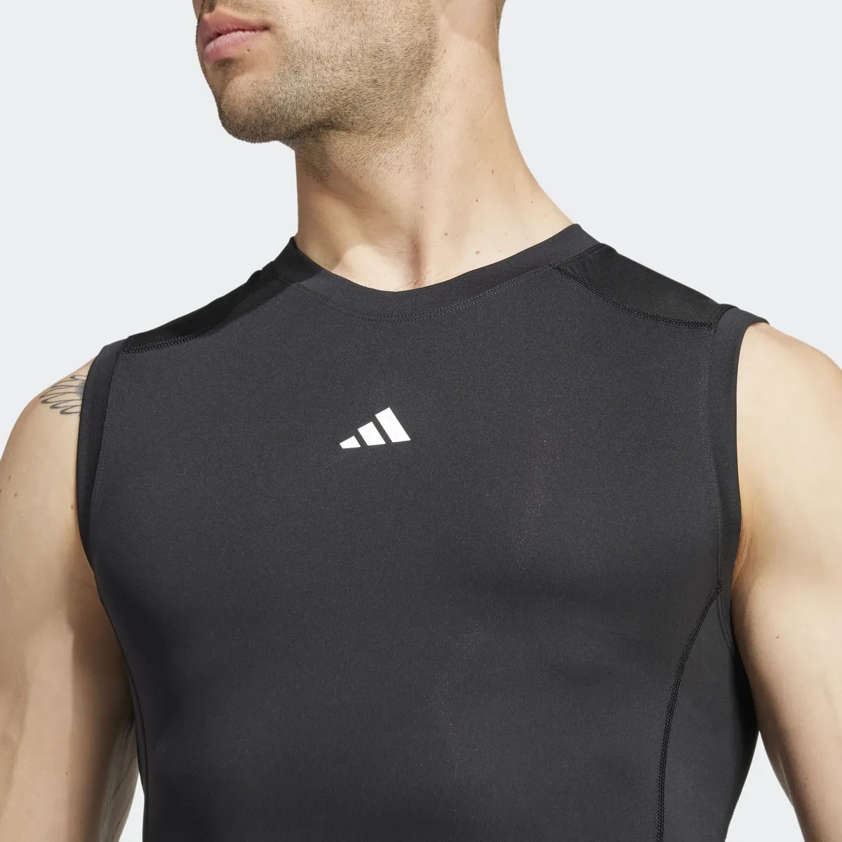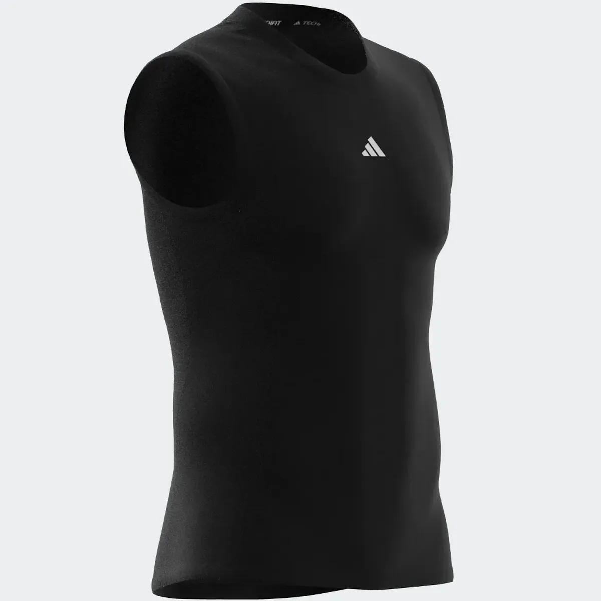 Эта тренировочная рубашка без рукавов с компрессионной посадкой частично изготовлена ​​из переработанных материалов.