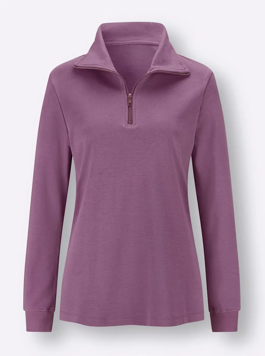 Толстовка удобного, но стабильного по размерам качества интерлок из чистого хлопка. Повседневный крой с отложным воротником, который можно заменить на воротник-стойку, и короткой застежкой-молнией. Ребристые манжеты на длинных рукавах и разрезы по бокам на подоле. 100% хлопок. Машинная стирка.