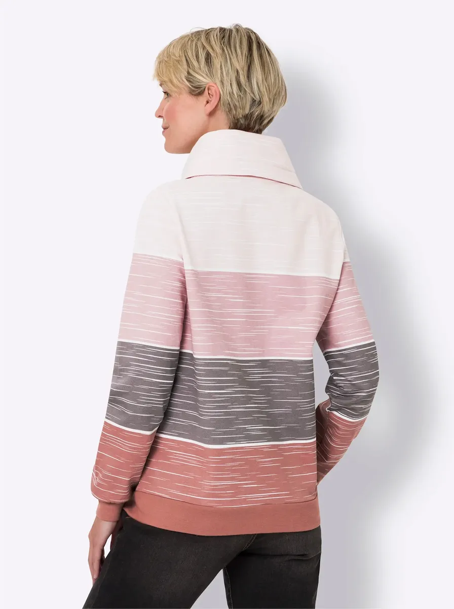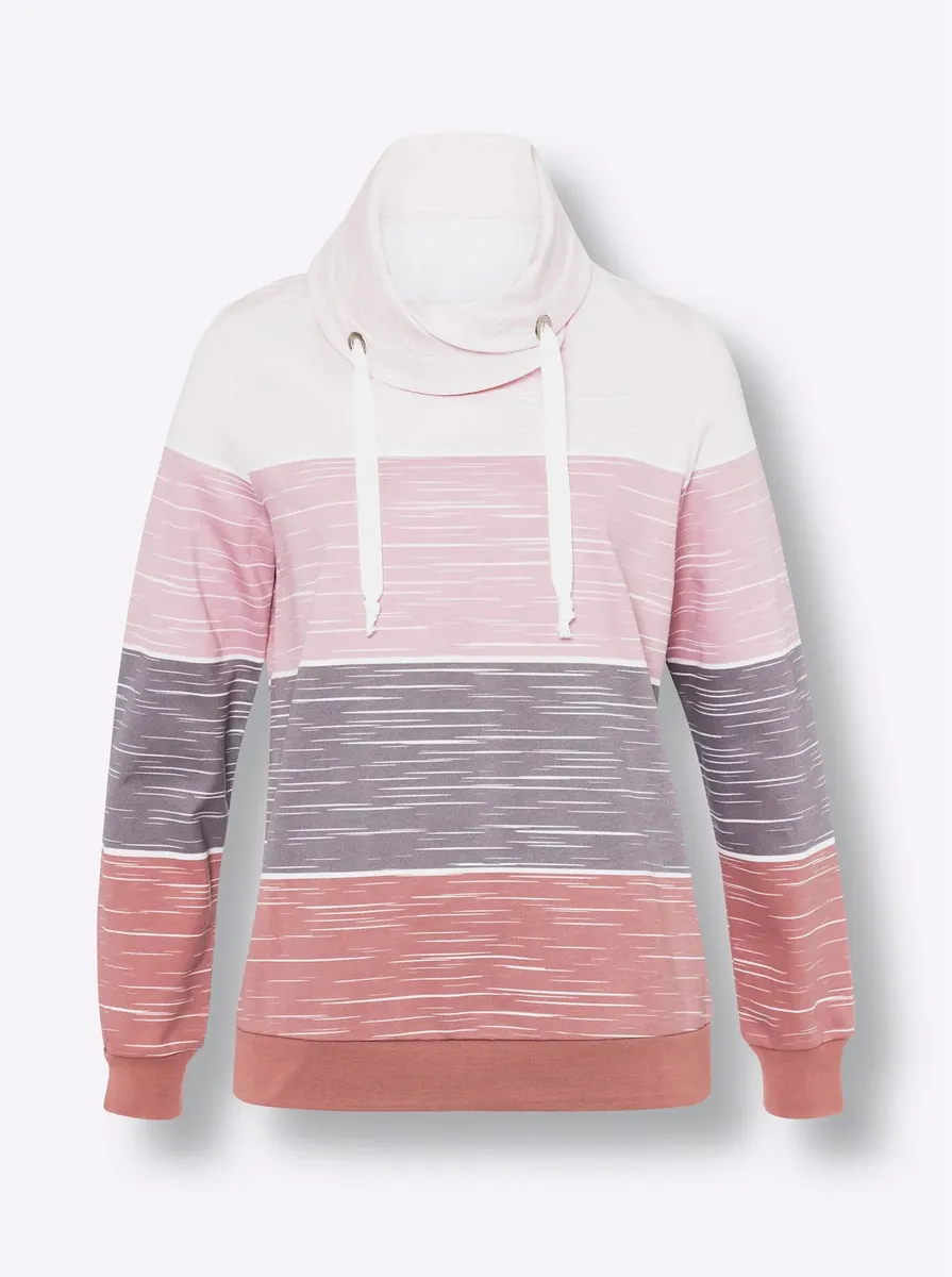 Толстовку из мягкого с начесом хлопка с внутренней стороны вам не захочется снимать. Спортивные полоски и красивый меланжевый оттенок. Водолазка внахлест с кулиской и завязывающимся ремешком. Ребристые манжеты на длинных рукавах и по нижнему краю. 100% хлопок. Машинная стирка.