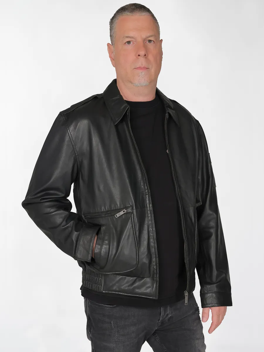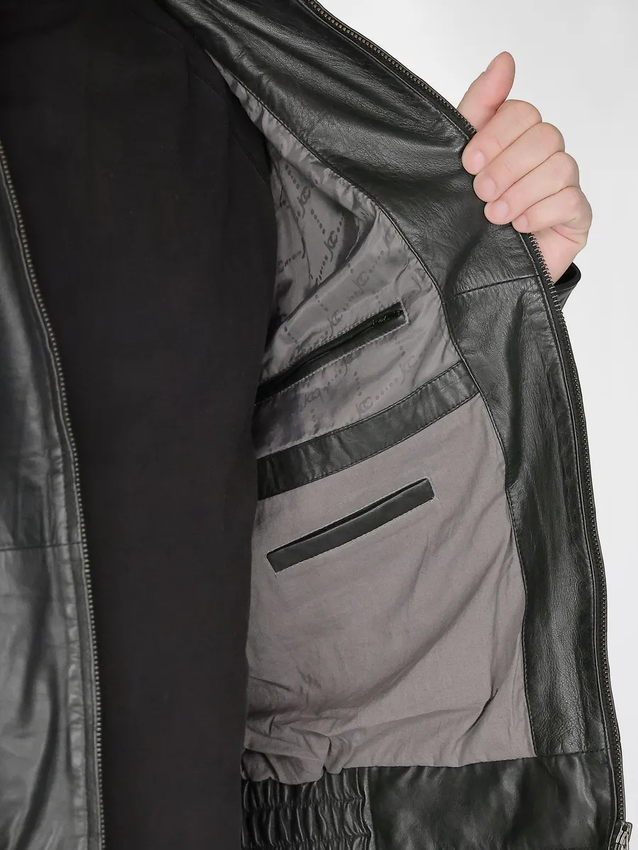 Подкладка: легкая набивкаСтрана-производитель: ИндияФорма воротника: отложной Материал внешней ткани: 100% кожаМатериал подкладки рукавов: 100%полиэстерПримечание к материалу: Содержит нетекстильные части животного происхождения.Состав материала: Верхняя ткань 100% кожа / верхняя подкладка: 100% полиэстер / подкладка нижней части: 100% хлопок / подкладка рукавов: 100% полиэстер Рисунок: однотонный Покрой: обычный Инструкции по уходу: специальная чистка кожи Тип/стиль изделия: кожаная куртка Тип застежки: молния Подкладка: нет/не актуально Целевая группа: мужчины Длина рукава: длинный рукав