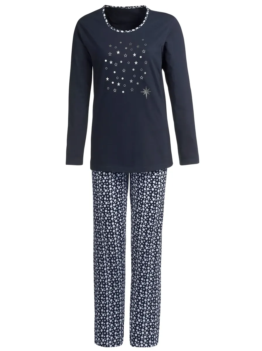 Мы достанем для вас звездочки с неба и украсим их милыми горошками на этой пижаме! Напечатан на передней части верха. Брюки с эластичным поясом по всей поверхности в горошек. Одинарный трикотаж. 100% хлопок.